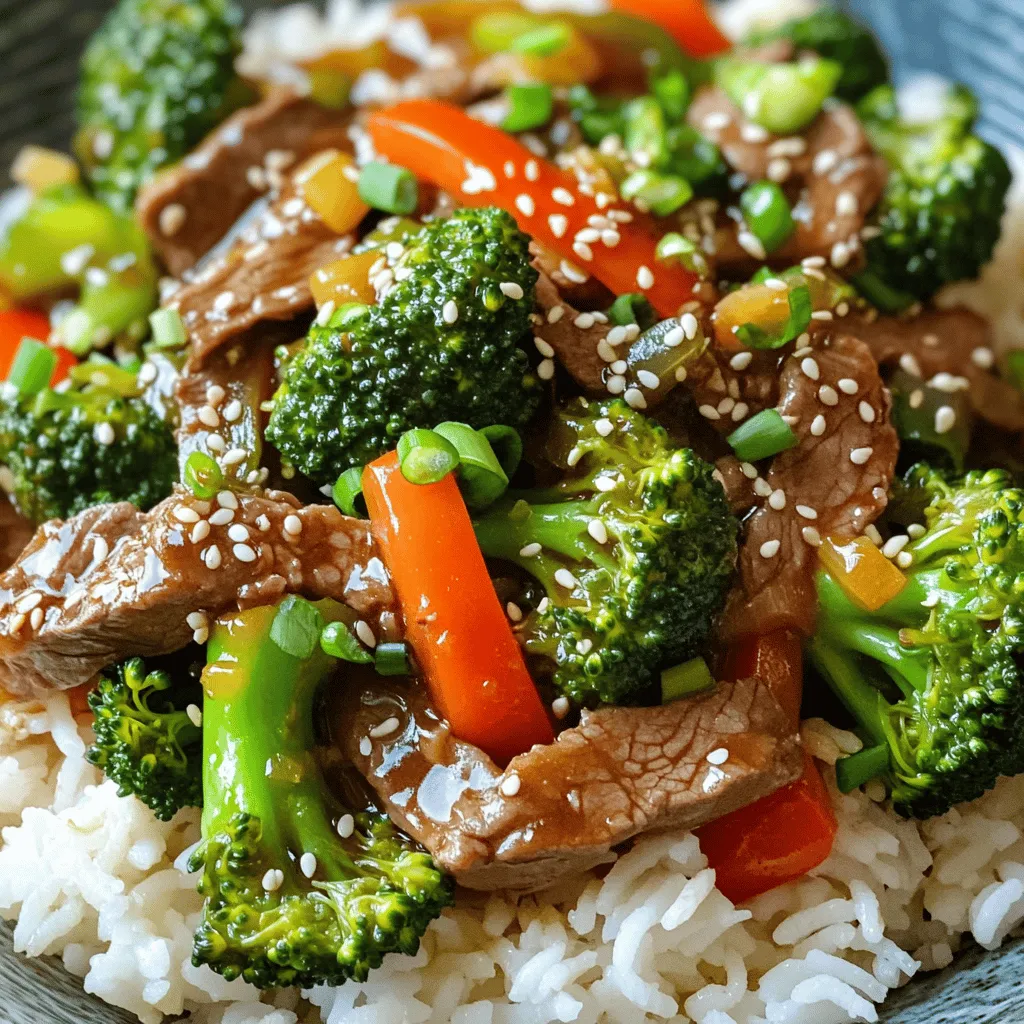For this beef and broccoli stir-fry, I love using flank steak. It stays tender and tasty when cooked right. Fresh broccoli adds crunch and color. The red bell pepper adds a sweet kick. Garlic and ginger bring a fragrant burst of flavor. Soy sauce and oyster sauce deepen the taste. Cornstarch in the marinade makes the beef silky.