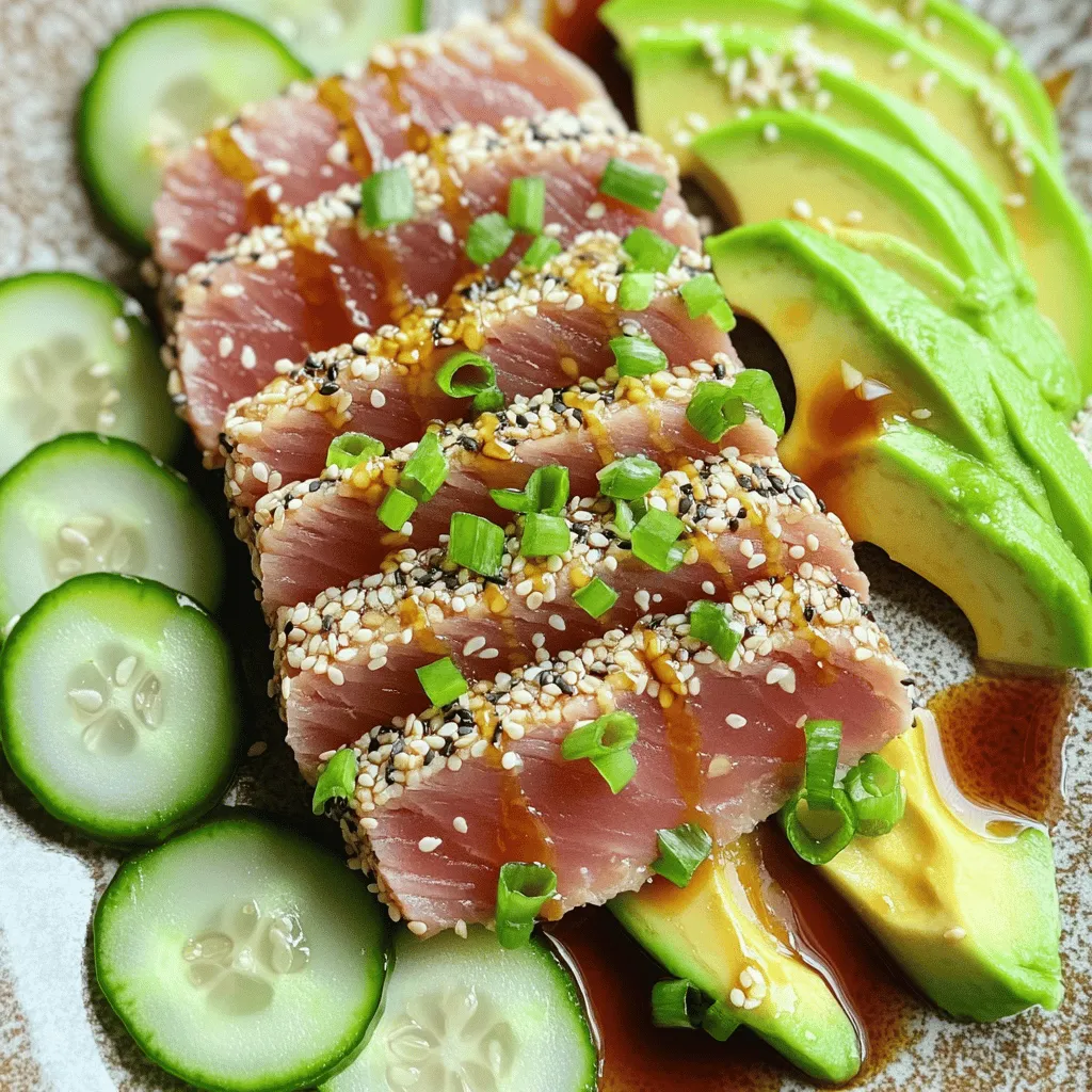 You can add more flavor to your tuna. Consider mixing chopped herbs like cilantro or basil into the sesame seeds. You can also add crushed garlic to the marinade for a punch. For some heat, try adding sliced jalapeños to your plate. Avocado and cucumber add creaminess and crunch. Feel free to explore flavors that excite you.