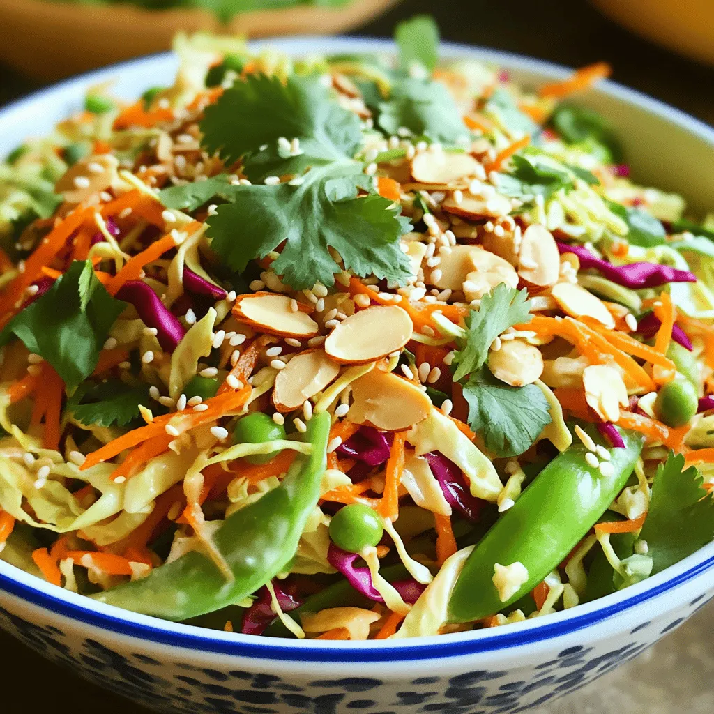 You can change up your Crunchy Asian Slaw by adding more veggies. Try daikon or jicama for a nice crunch. They add a sweet and crisp flavor that pairs well with the slaw. You can also use fresh herbs like mint or basil for a fun twist. If you want a different nutty flavor, swap almonds for cashews. They bring a creamier taste and add richness.