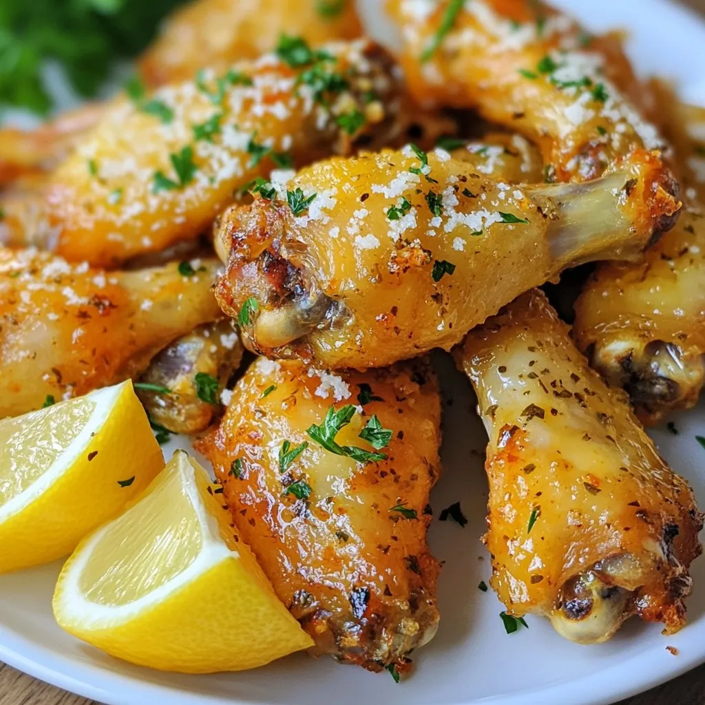 Grated Parmesan cheese is key. It melts slightly and adds a rich taste. For garnish, fresh parsley brightens the look and flavor. Lemon wedges are optional, but they add a nice zing when served alongside the wings. These simple ingredients come together to create a delicious dish youβll love.