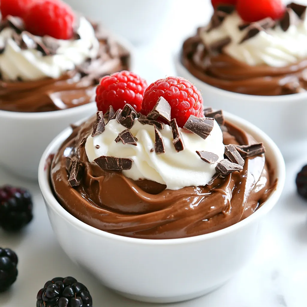 - 2 ripe avocados, peeled and pitted - 1/2 cup unsweetened cocoa powder, sifted - 1/3 cup pure maple syrup or agave syrup - 1/4 cup almond milk or your preferred milk The main stars of this dessert are ripe avocados. They give the mousse a creamy base. The unsweetened cocoa powder adds rich chocolate flavor. I love using pure maple syrup for sweetness, but agave syrup works well too. Almond milk keeps the mousse smooth, but feel free to use any milk you like. - Whipped coconut cream - Dark chocolate shavings - Fresh berries You can make this dessert even better with toppings. Whipped coconut cream adds a light touch. Dark chocolate shavings bring a nice crunch and more chocolate flavor. Fresh berries add color and a fruity taste. You can mix and match these toppings based on your mood. Avocados are packed with healthy fats and fiber. They help keep you full and satisfied. Dark chocolate is also good for you. It is rich in antioxidants and can lift your mood. Each serving of this mousse is around 200 calories, making it a guilt-free treat. {{ingredient_image_2}} - First, take two ripe avocados. - Slice each avocado in half with a sharp knife. - Carefully remove the pit from each half. - Use a spoon to scoop out the creamy flesh into your food processor. - Next, add the unsweetened cocoa powder, maple syrup, almond milk, vanilla extract, and sea salt. - Make sure to measure each ingredient carefully for the best flavor. - Blend the ingredients on high speed. - Stop and scrape the sides with a spatula to mix well. - Continue blending until the mixture is smooth and creamy. - If the mousse is too thick, add a bit more almond milk. - For sweetness, taste and add more maple syrup as needed. - Spoon the mousse into small dessert cups or bowls. - For a nice look, smooth the tops with a spatula. - Chill the mousse in the fridge for at least 30 minutes. - Serve cold to enjoy the rich flavors. - Top with whipped coconut cream, chocolate shavings, or fresh berries for extra flair. To make your mousse creamier, use very ripe avocados. The softer they are, the smoother your mousse will be. Blend the ingredients until they are completely mixed. If it seems thick, add more almond milk. You can also add a bit of nut butter for extra creaminess. Adjusting sweetness is simple. Start with the maple syrup. Blend, then taste. If you want it sweeter, add more syrup a little at a time. Blend after each addition to find your perfect level of sweetness. A good food processor is key for this mousse. I recommend a model with a strong motor. It helps create that silky texture we all love. Look for one with a large bowl to hold all the ingredients. For presentation, use clear dessert cups. They show off the beautiful color of the mousse. A small spatula helps scoop the mousse without making a mess. Over-blending can whip air into your mousse. Blend just until smooth. Under-blending leaves lumps, which you want to avoid. If this happens, blend a bit longer, but keep an eye on it. Ingredient substitutions can change the texture. If you use sweeteners other than maple syrup, it may not blend as smoothly. Stick to the recipe for the best results. Pro Tips Choose Ripe Avocados: Ensure your avocados are perfectly ripe for the best creamy texture. They should yield slightly to gentle pressure when squeezed. Adjust Sweetness to Taste: Start with the recommended amount of maple syrup, but feel free to adjust based on your preference for sweetness. Experiment with Milk Options: While almond milk is a great choice, you can also try coconut milk or oat milk for a different flavor profile. Chill for Optimal Flavor: Allowing the mousse to chill for at least 30 minutes enhances the flavors and improves its consistency. {{image_4}} You can make your mousse even better by adding spices. A dash of cinnamon gives warmth. A little espresso adds a rich coffee flavor. You can also mix in nut butters like almond or peanut. This adds a creamy texture and a nutty taste. If you want a vegan version, use agave syrup instead of maple syrup. Substitute almond milk with any plant-based milk. For those with nut allergies, use oat milk or soy milk. You can still enjoy this dessert without nuts. Try layering the mousse with other desserts. It works great with fruits or granola. For special occasions, serve it in clear glasses. This shows off the rich color. Add fresh mint leaves on top for a nice touch. To keep your leftover mousse fresh, place it in an airtight container. This will help lock in the flavors. If you do not have an airtight container, cover it tightly with plastic wrap. Make sure the wrap touches the surface of the mousse to limit air exposure. This helps prevent browning. In the fridge, the mousse will stay good for about 3 days. Always check for signs of spoilage. If you see any discoloration or an off smell, it’s best to toss it out. Freshness matters for taste! You can freeze the mousse for up to a month. Portion it into small containers for easy use later. To thaw, place it in the fridge overnight. For best texture, stir it gently after thawing. This will help restore creaminess. Avocado chocolate mousse is a rich, creamy dessert made with ripe avocados and cocoa powder. This recipe blends healthy fats from avocados with the deep flavor of chocolate. The mousse is sweetened with maple syrup, making it a delightful treat. Avocados add smoothness and nutrients. They are high in fiber and good fats, which support heart health and digestion. This dessert is not only tasty but also guilt-free. Yes, you can make this mousse ahead of time. I recommend chilling it in the fridge for at least 30 minutes. This chilling time helps it firm up and enhances the flavors. You can store it in airtight containers. Keep it in the fridge for up to three days. Just cover it well to prevent browning. Yes, this recipe is vegan-friendly! Use pure maple syrup or agave syrup as the sweetener. Almond milk or any plant-based milk works well too. Make sure 
