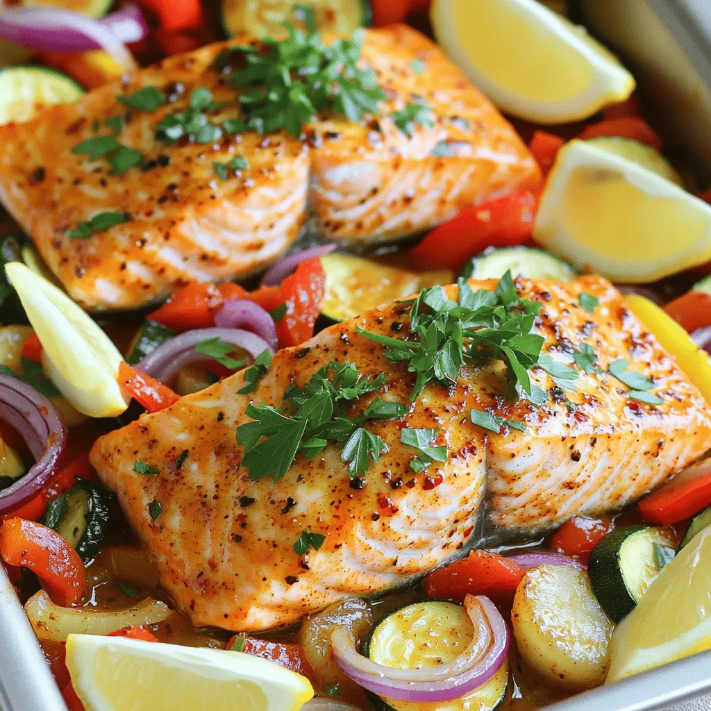 Plating your dish can make it more appealing. Serve the salmon on a bed of the roasted veggies. This adds color and makes the dish look fancy. You can also sprinkle fresh parsley on top for a pop of green. Add lemon wedges around the plate for a bright touch. This adds flavor and looks great!
