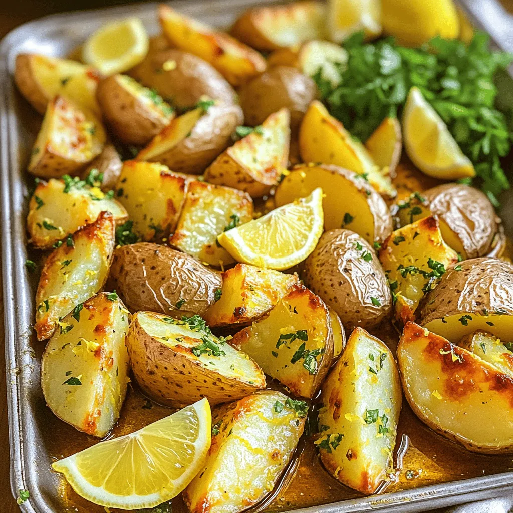 - 4 medium Yukon Gold potatoes, peeled and cut into wedges - 1/4 cup high-quality olive oil - 3 cloves garlic, finely minced - Juice and zest of 2 freshly squeezed lemons - 1 teaspoon dried oregano - 1 teaspoon dried thyme - Salt and freshly cracked black pepper, to taste - Fresh parsley, finely chopped for garnish - Baking dish - Mixing bowl - Whisk - Spatula - Knife and cutting board When I make Baked Greek Lemon Potatoes, I love how simple yet tasty they are. The key is using quality ingredients. Yukon Gold potatoes work best because they are creamy and hold flavor well. You need to peel and cut the potatoes into wedges. This creates bite-sized pieces that cook evenly. The olive oil adds richness while the garlic gives it a nice kick. Fresh lemons bring brightness, and the herbs add depth. Having the right tools makes the process smooth. A sturdy baking dish helps the potatoes roast well. A mixing bowl and whisk are perfect for blending the marinade. I always recommend chopping parsley fresh for garnish. It adds a pop of color to the dish. Plus, it gives a fresh taste that balances the rich potatoes. For the full recipe, check out the instructions to bring these flavors to life! - Preheat your oven to 400°F (200°C). - Lightly grease a large baking dish with olive oil. Now, let's get started! First, you want to preheat your oven. This step is key for getting a nice, crispy texture on your potatoes. While the oven heats, grab a large baking dish. Coat the bottom with olive oil. This will help the potatoes not stick and add flavor. - Combine olive oil, garlic, lemon juice, lemon zest, oregano, thyme, salt, and pepper in a mixing bowl. Next, we’ll prepare the marinade. In a mixing bowl, mix olive oil, minced garlic, lemon juice, and lemon zest. Add dried oregano and thyme for that classic Greek flavor. Don’t forget salt and pepper! Whisk everything together. The smell will make your mouth water. - Toss potato wedges in the marinade. - Arrange wedges in a baking dish and bake for 45-50 minutes, turning halfway. Now, toss the potato wedges into the marinade. Use your hands or a spatula to coat each wedge well. Place the coated wedges in the baking dish in a single layer. Then, pop the dish in your preheated oven. Bake for 45-50 minutes. Halfway through, turn the potatoes. This helps them brown evenly. When they are done, they will be soft inside and crispy outside. For the full recipe, check other sections in this article! To make your Baked Greek Lemon Potatoes crispy, keep a few things in mind. First, space the potato wedges evenly in the baking dish. This allows hot air to circulate around them. Second, turn the potatoes halfway through cooking. This helps them brown evenly and gives them a nice crunch. Want to take the flavor up a notch? Try adding other herbs like rosemary or dill. They pair wonderfully with the lemon and garlic. You can also use Meyer lemons. They are sweeter and add a lovely touch to the dish. Before serving, garnish your potatoes with fresh parsley. This adds color and freshness. You can also serve these potatoes alongside grilled meats. They shine as part of a Mediterranean spread, making any meal feel special. For the full recipe, check out the detailed instructions above! {{image_4}} You can change the herbs to suit your taste. Try rosemary or dill for different flavor notes. Both herbs add a nice twist. You can also add fresh herbs after baking. This gives a bright, fresh look and taste to your dish. If you want a vegan version, substitute olive oil with avocado oil. This keeps the dish rich while being plant-based. You can also skip garlic for a lighter flavor. If you still want garlic, use garlic powder instead. This will give you a more subtle taste. For more texture, consider adding sliced onions or cherry tomatoes. Both will bring more color and flavor. You can also incorporate feta cheese for a richer taste. It adds creaminess and a salty kick. These add-ins elevate the dish and make it more exciting. Check out the Full Recipe for more ideas! To keep your Baked Greek Lemon Potatoes fresh, cool them completely before storing. Once cooled, transfer the potatoes to an airtight container. This helps maintain their flavor and prevents them from drying out. If stored correctly, they can last about 3-4 days in the fridge. When you're ready to enjoy your leftover potatoes, reheat them in the oven at 350°F (175°C) for about 10-15 minutes. This method keeps them crispy. If you're short on time, you can also use the microwave for quick warming. Just place a damp paper towel over the potatoes to keep them moist. For future meals, you can freeze marinaded but uncooked potatoes. Make sure to follow specific freezing guidelines to keep the flavor and texture intact. Spread the wedges in a single layer on a baking sheet to freeze. Once frozen, transfer them to a freezer-safe bag. This way, you can enjoy a taste of Greece any day you wish! For the full recipe, check out the complete instructions. Baked Greek Lemon Potatoes can last about 3-4 days in an airtight container. It's best to let them cool completely before storing. This helps keep their texture and flavor. Yes, you can prepare and marinate them a day in advance. Just mix the potatoes with the marinade and let them sit in the fridge. When you are ready, bake them for a tasty side dish. I recommend Yukon Gold potatoes for their creamy texture. They hold up well during baking. Russets are also a good choice if you want a fluffier inside. Both types will give you great flavor. For the full recipe, check out the detailed instructions to make these delicious potatoes! This article shared a simple recipe for Baked Greek Lemon Potatoes. We covered ingredients, preparation, and helpful tips. You learned how to get that perfect crispiness and flavor. Remember, you can make these potatoes your own with herbs and add-ins. Store leftovers properly and enjoy them later. These potatoes pair well with many dishes. Now, y