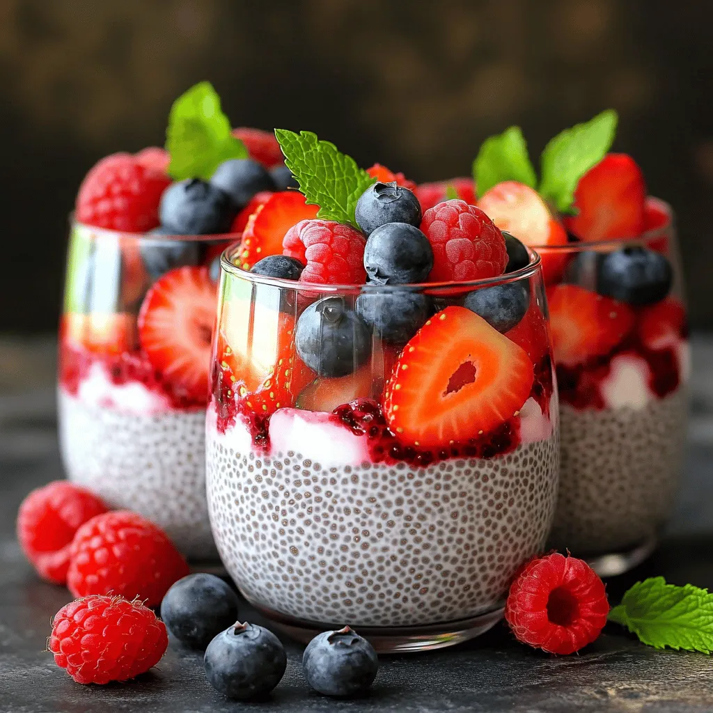 The main ingredients of this berry chia pudding create a delicious treat. Coconut milk gives a rich, creamy base. You can use almond milk for a nutty twist. Chia seeds are the star of the show. They soak up liquid and form a lovely texture. Sweeteners like maple syrup or honey add just the right sweetness. Vanilla extract enhances the flavor and aroma.