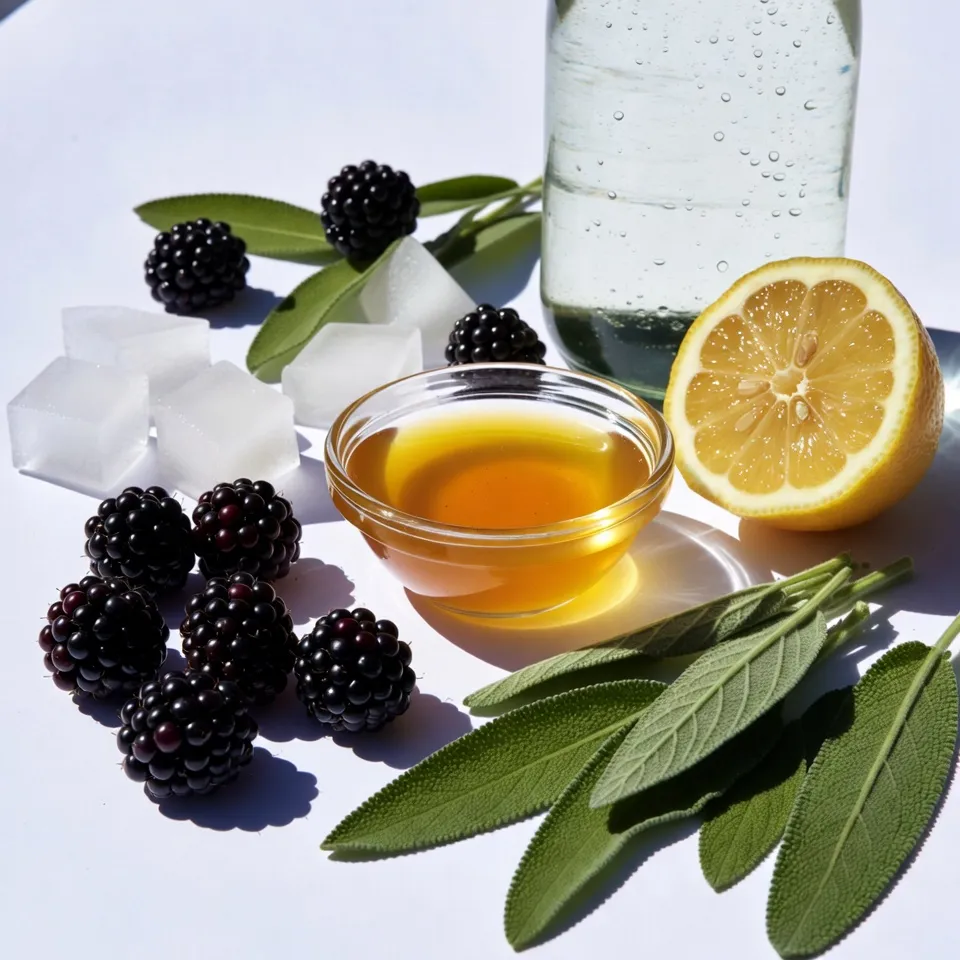 A refreshing non-alcoholic drink made with blackberries, sage, honey, and sparkling water.