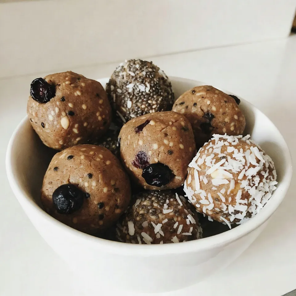 Nutritious and delicious energy balls packed with blueberries and almonds, perfect for a quick snack.
