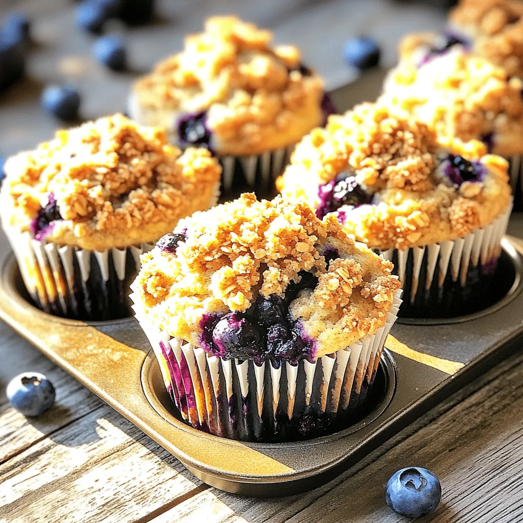 To make delicious blueberry crumble muffins, gather these simple items: