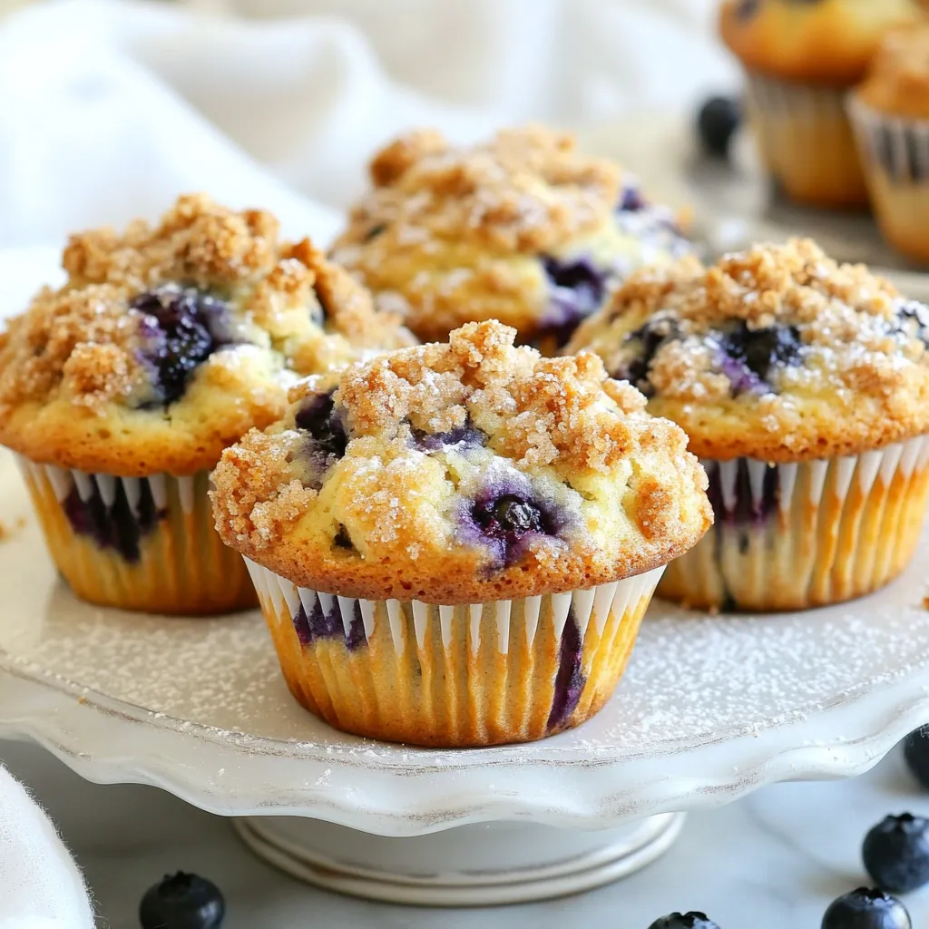 - 2 cups all-purpose flour - 1 cup fresh or frozen blueberries - 1 cup granulated sugar - 1/2 cup unsalted butter, melted - 1 cup milk - 2 large eggs - 1 tablespoon baking powder - 1 teaspoon vanilla extract - 1/2 teaspoon salt I love using all-purpose flour for muffins. It gives a nice, fluffy texture. Fresh blueberries burst with flavor, but frozen works well too. Granulated sugar sweetens the muffins perfectly. I always use unsalted butter for a balanced taste. Milk keeps the batter moist and rich. Large eggs help bind everything together. Baking powder gives them that lovely rise. A hint of vanilla extract adds depth, and salt balances the sweetness. - 1/2 cup all-purpose flour - 1/3 cup brown sugar, packed - 1/4 cup unsalted butter, cold and cubed - 1/2 teaspoon ground cinnamon - A pinch of salt For the streusel, I use all-purpose flour and brown sugar for a sweet crunch. Cold, cubed unsalted butter creates that crumbly texture. Ground cinnamon adds warmth and flavor. A pinch of salt enhances the taste and rounds out the sweetness. This topping takes the muffins to a new level! {{ingredient_image_2}} First, preheat your oven to 375Β°F (190Β°C). This step ensures even baking. Next, prepare your muffin tin. You can line it with paper liners or use a light spray of non-stick cooking spray. This helps the muffins pop out easily when done. To start the streusel, mix the dry ingredients. In a small bowl, combine 1/2 cup of flour, 1/3 cup of brown sugar, 1/2 teaspoon of ground cinnamon, and a pinch of salt. Next, add cold, cubed butter. Use a fork or pastry cutter to blend until it looks like coarse crumbs. Set this aside for later. Now, let’s make the muffin batter. In a large bowl, combine 1 cup of granulated sugar with 1/2 cup of melted butter. Whisk until smooth. Then, add 2 large eggs and 1 teaspoon of vanilla extract. Whisk again until fully blended. In a separate bowl, whisk together 2 cups of flour, 1 tablespoon of baking powder, and 1/2 teaspoon of salt. Slowly add this dry mix to the wet mix. Alternate with 1 cup of milk. Mix until just combined. A few lumps are okay; don’t overmix! Next, gently fold in the blueberries. Use a spatula to add 1 cup of fresh or frozen blueberries to the batter. Be careful not to crush them. This helps keep the muffins light and fluffy. Now, let’s fill the muffin cups. Use a cookie scoop or spoon to fill each cup about two-thirds full. This gives them room to rise. After that, sprinkle the prepared streusel topping evenly on each muffin. This adds a nice crunch and sweet flavor. Place the muffin tin in the oven and bake for 18-20 minutes. Check for doneness by inserting a toothpick into the center. It should come out clean or with a few moist crumbs. Once done, let the muffins cool in the pan for about 5 minutes. Then, carefully transfer them to a wire rack to cool completely. Enjoy your delicious blueberry streusel muffins! To make the best blueberry muffins, avoid overmixing the batter. Overmixing can lead to tough muffins. Mix until just combined; it’s okay if a few lumps remain. This keeps the muffins light and airy. For fluffy muffins, use room temperature ingredients. Cold butter and eggs can slow the mixing process. Melt the butter before adding it to the sugar. Whisk the eggs and milk together until smooth. These steps help create a tender muffin. Using fresh blueberries gives the best taste. They burst with juice and add a bright flavor. If fresh blueberries are not available, frozen ones work too. Just remember to fold them in gently, so they don’t break apart. You can also add a touch of lemon zest or almond extract for extra flavor. These additions can elevate your muffin experience. Experimenting with spices, like nutmeg, can bring a new twist. For a lovely presentation, display the muffins on a decorative platter. Dust them lightly with powdered sugar for a sweet touch. Serve them warm or at room temperature to enhance their flavor. Pair your muffins with a nice cup of tea or coffee. The warm drinks complement the sweetness of the muffins. It makes for a delightful snack or breakfast treat. Pro Tips Use Fresh Blueberries: For the best flavor and texture, opt for fresh blueberries when available. They burst beautifully during baking and add a delightful juiciness to each muffin. Don’t Overmix: When combining your wet and dry ingredients, mix until just combined. Overmixing can lead to tough muffins, so a few lumps in the batter are perfectly fine. Chill the Butter: For the streusel topping, make sure your butter is cold and cubed. This helps create a crumbly texture that adds a delightful crunch to your muffins. Let Them Cool: Allow the muffins to cool in the pan for a few minutes before transferring to a wire rack. This helps them set properly and prevents them from becoming soggy. {{image_4}} You can change up the fruits in these muffins. Raspberries or strawberries work well. They add a new flavor and a pop of color. You can also use seasonal fruits. Peaches in summer or apples in fall can create great options. Each fruit brings its own charm to the muffins. If you need gluten-free muffins, swap all-purpose flour for a gluten-free mix. This works well and keeps the muffins light. For a vegan option, replace eggs with flaxseed meal mixed with water. Use plant-based milk instead of regular milk. You can also cut back on sugar if you prefer a healthier muffin. Try using less sugar or a natural sweetener like honey or maple syrup. Get creative with toppings! You can add nuts like walnuts or pecans for a crunchy twist. Seeds like sunflower or pumpkin seeds can also add texture. Mix in spices like nutmeg or cardamom in the streusel for more flavor. These small changes will make your muffins unique and fun. To store muffins at room temperature, place them in an airtight container. This keeps them fresh. Line the bottom with a paper towel. This helps absorb any moisture. You can store them for up to three days. If you want the