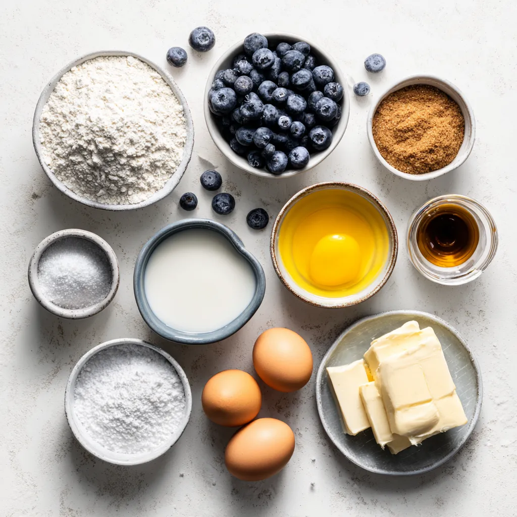 I love using all-purpose flour for muffins. It gives a nice, fluffy texture. Fresh blueberries burst with flavor, but frozen works well too. Granulated sugar sweetens the muffins perfectly. I always use unsalted butter for a balanced taste. Milk keeps the batter moist and rich. Large eggs help bind everything together. Baking powder gives them that lovely rise. A hint of vanilla extract adds depth, and salt balances the sweetness.