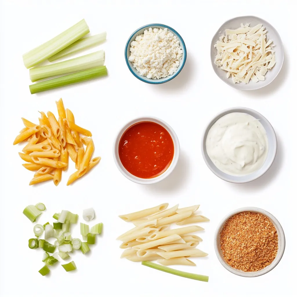 Start by preheating your oven to 350°F (175°C). This step is key for a well-cooked casserole. While the oven warms up, gather all your ingredients. You need cooked chicken, Buffalo sauce, ranch dressing, and cooked pasta. Don’t forget the cheese, green onions, and celery. Having everything ready makes the process smooth and fun.