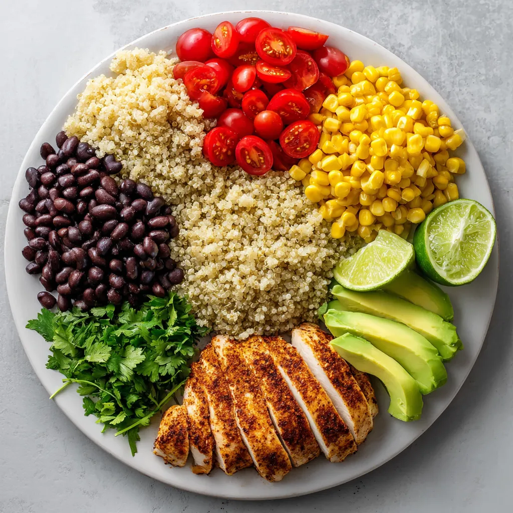 Grab a large bowl and start with a base layer of fluffy quinoa. Next, layer on the sautΓ©ed veggies, sliced Cajun chicken, halved cherry tomatoes, and avocado slices. Arrange everything nicely for a great look. Each layer brings its own color and flavor to the dish.