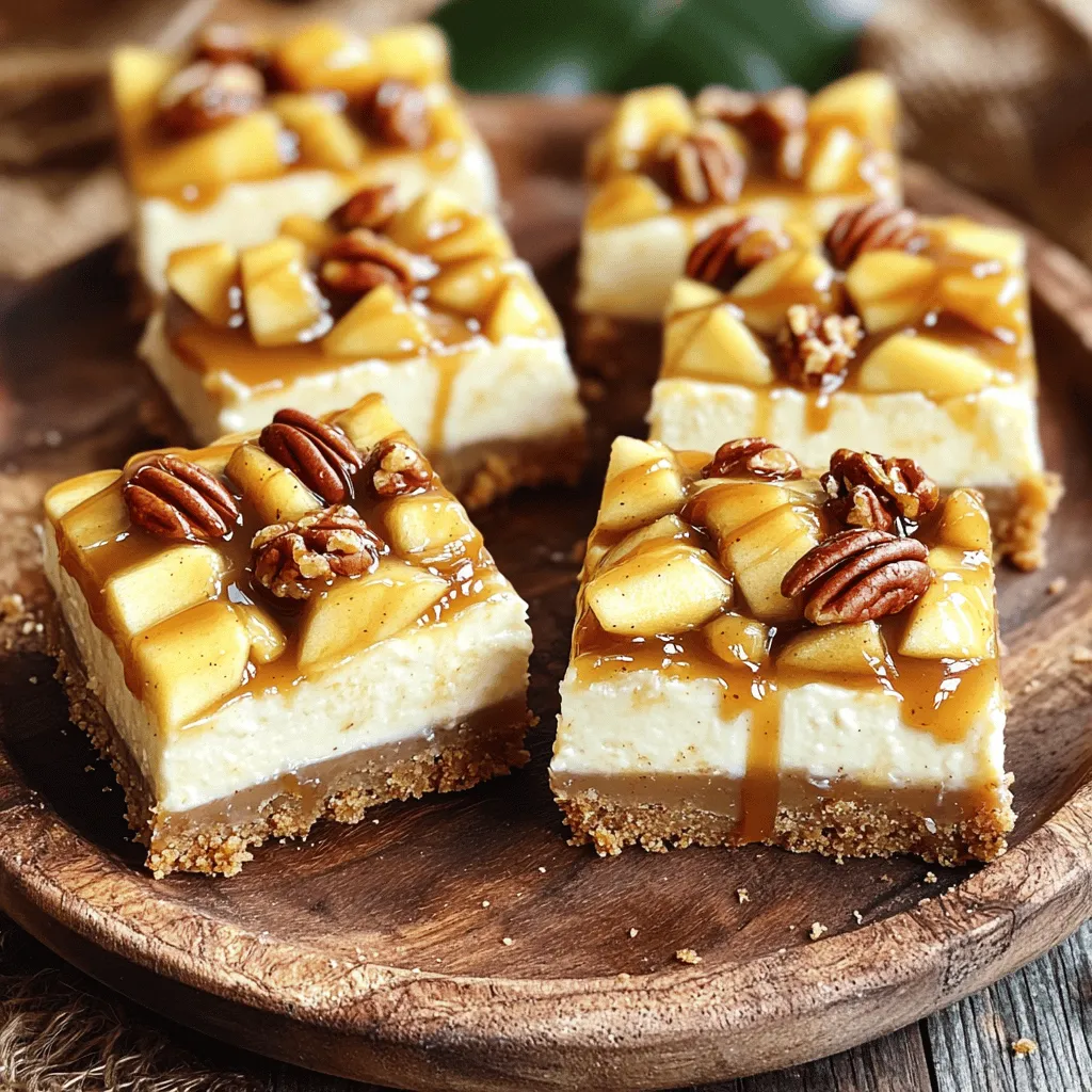 Serve these bars chilled for the best taste. They pair well with whipped cream or a scoop of vanilla ice cream. A drizzle of caramel sauce adds extra sweetness. You can also sprinkle some chopped pecans on top for crunch. For a fun twist, serve them with a side of hot cider. It adds a cozy feel to your dessert. These tips will help you enjoy every bite of your caramel apple cheesecake bars.