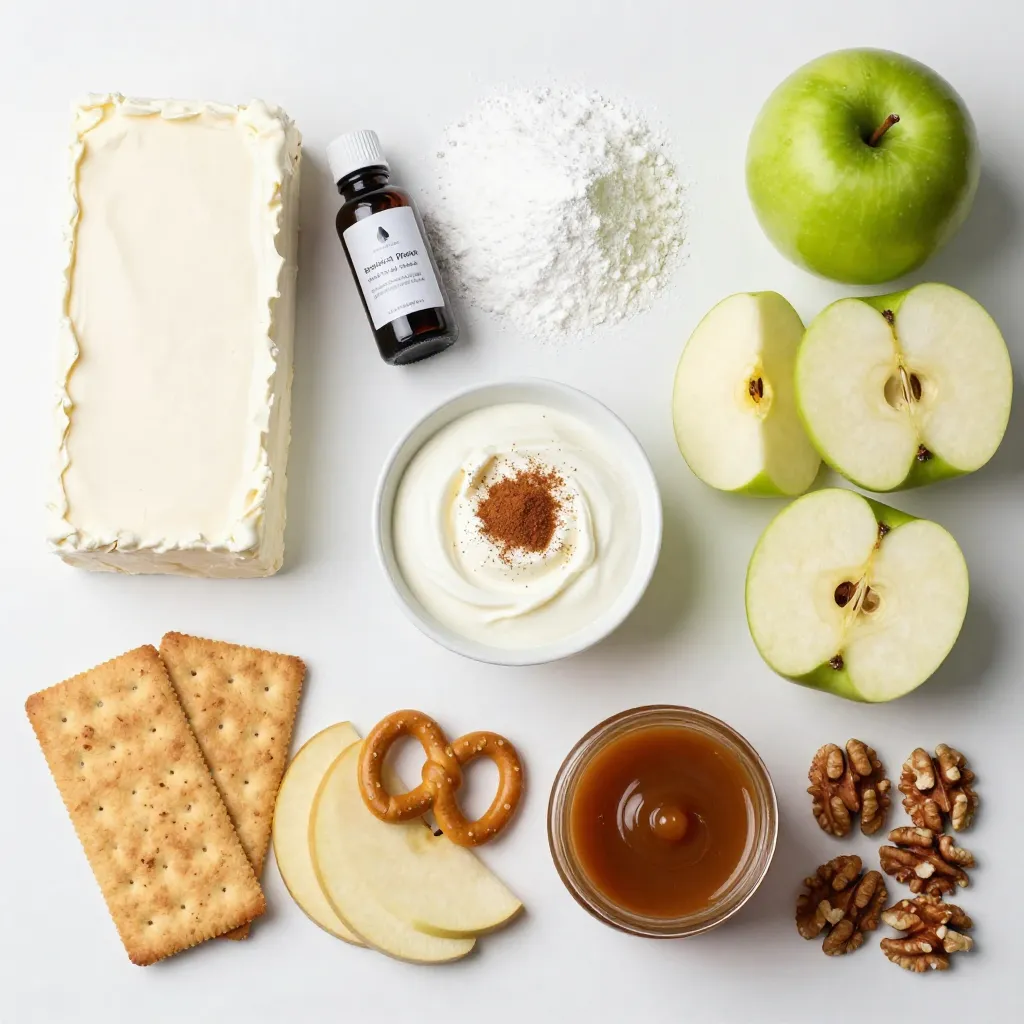A creamy and delicious dip featuring tart apples, caramel, and a hint of cinnamon, perfect for dipping with assorted snacks.