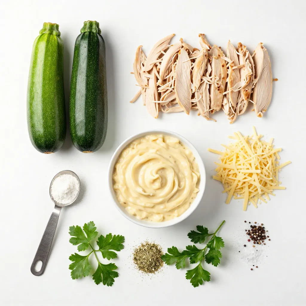 To make Chicken Alfredo Stuffed Zucchini Boats, you need simple ingredients. First, grab 4 medium zucchini. These will be the boats that hold all the tasty filling. Next, you need 2 cups of cooked, shredded chicken. This adds protein and flavor.