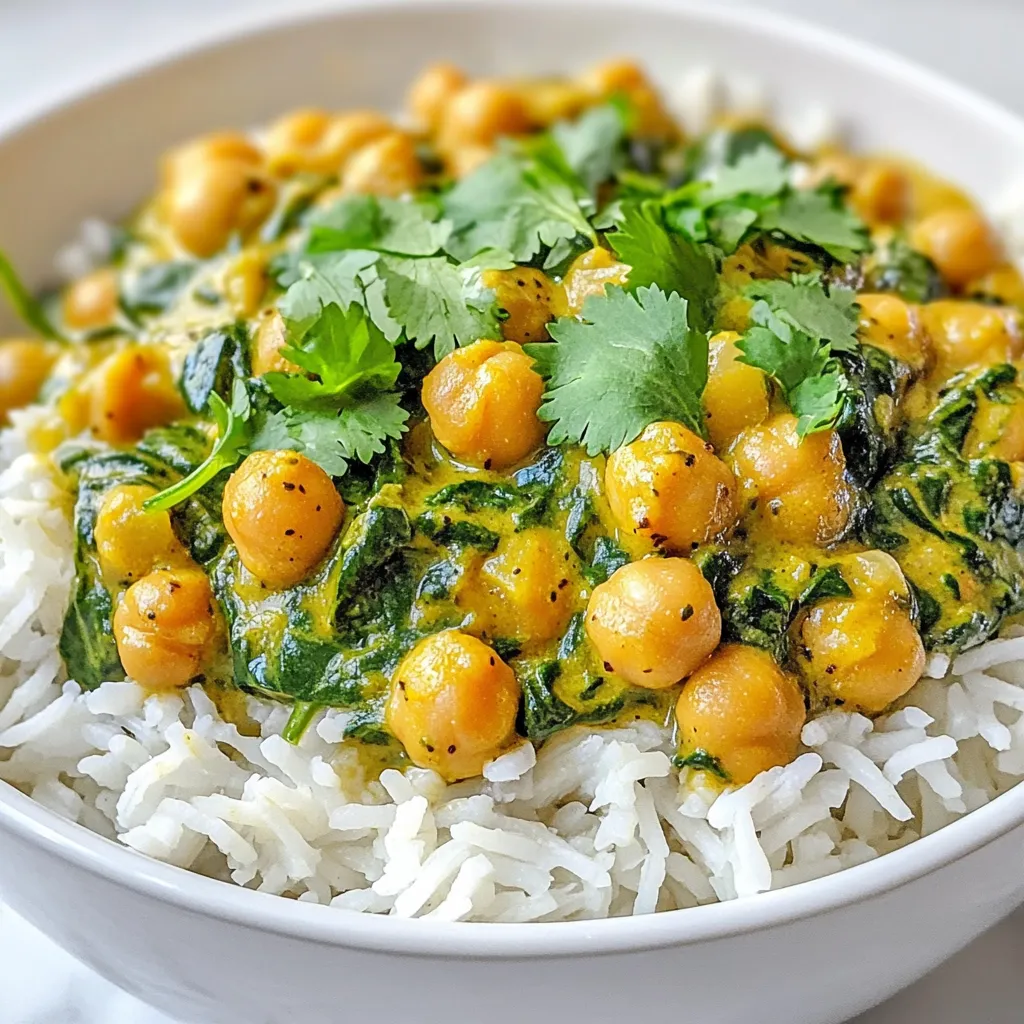 A flavorful and aromatic chickpea and spinach curry cooked in creamy coconut milk with spices.