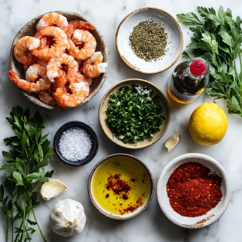 While the shrimp is marinating, prepare the chimichurri sauce. In another bowl, mix together the finely chopped parsley, cilantro, minced garlic, red pepper flakes, red wine vinegar, and lemon juice. Gradually drizzle in the remaining 2 tablespoons of olive oil, stirring until the ingredients are well combined and the sauce reaches a cohesive consistency.