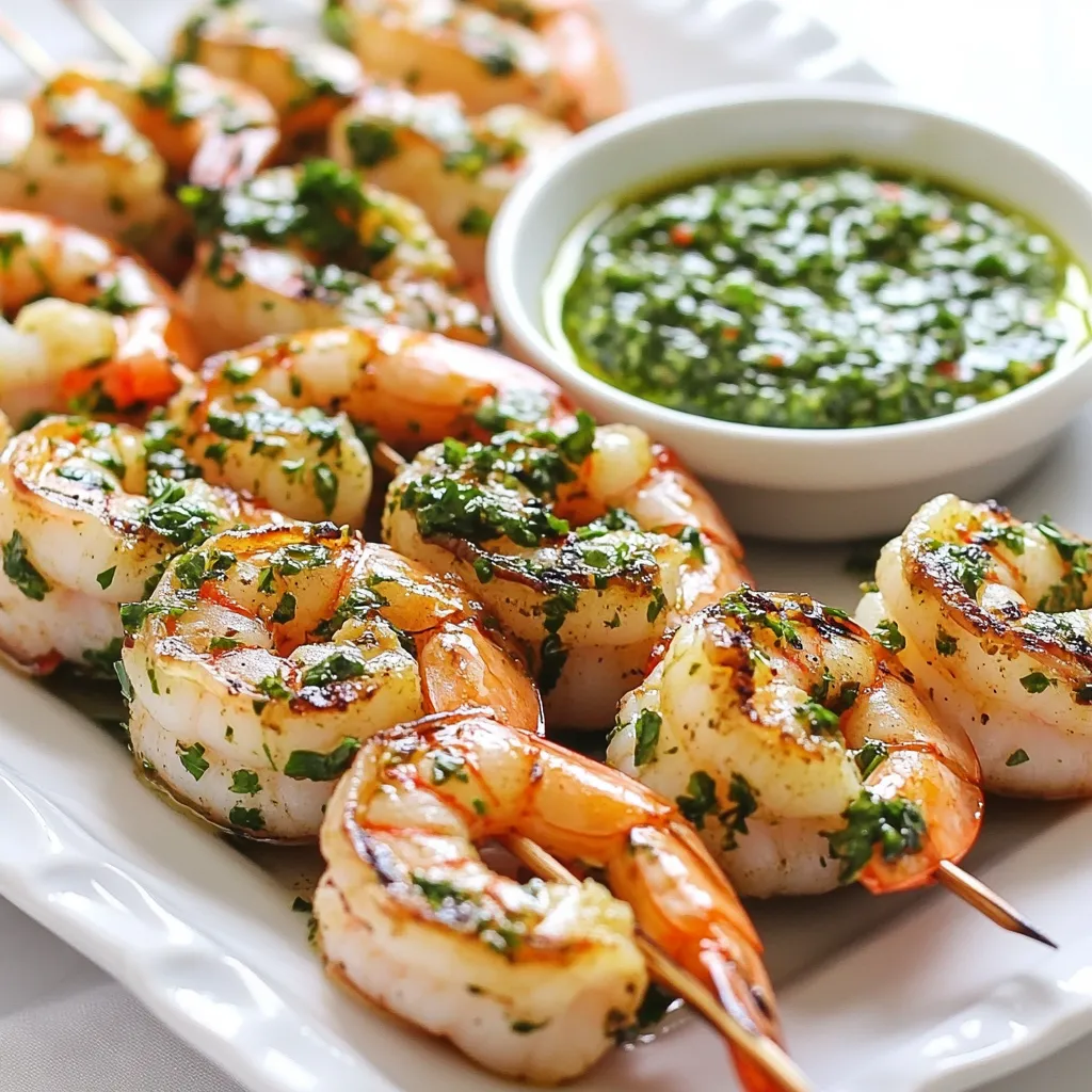 Grilled shrimp marinated in a flavorful chimichurri sauce.