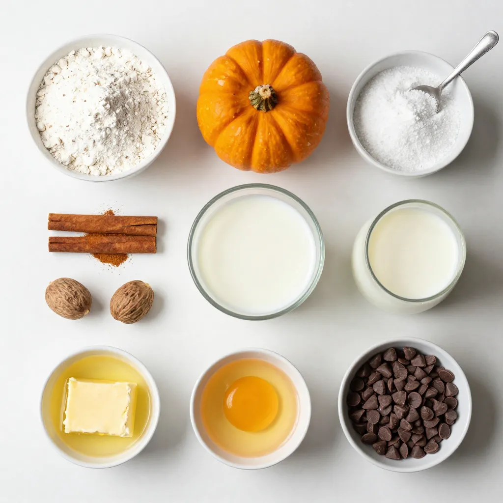 List of ingredients for Chocolate Chip Pumpkin Pancakes