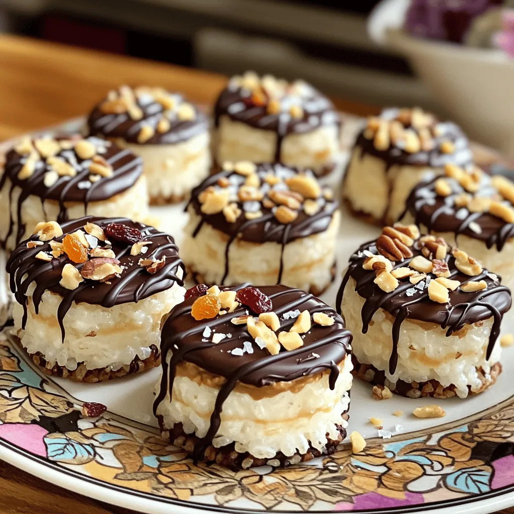 Once you’ve drizzled the chocolate, it’s time for the toppings. Sprinkle chopped nuts and dried fruit over the chocolate while it’s still warm. This adds a great crunch and flavor. Finally, add a light pinch of sea salt on top. This little touch boosts the sweetness and makes each bite even better. Now, chill the rice cakes in the fridge for 15-20 minutes. This helps the chocolate set and makes them ready to eat.