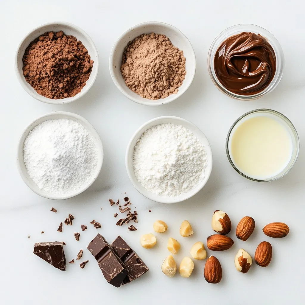 To make a delicious chocolate hazelnut mug cake, you need some simple ingredients. Here’s the list to get you started: - 4 tablespoons all-purpose flour - 4 tablespoons granulated sugar - 2 tablespoons unsweetened cocoa powder - 1/8 teaspoon baking powder - 1/8 teaspoon salt - 3 tablespoons milk (or your favorite non-dairy milk) - 2 tablespoons vegetable oil - 1 teaspoon vanilla extract - 2 tablespoons chocolate hazelnut spread - A handful of chopped hazelnuts for topping These ingredients come together to create a rich, moist cake. The all-purpose flour gives it structure, while granulated sugar adds sweetness. Cocoa powder brings the chocolate flavor, making it a treat for any chocolate lover. Baking powder helps it rise, and salt balances the sweetness. You can use any milk you like, making this recipe flexible for your needs. The vegetable oil keeps the cake moist, and vanilla extract adds a lovely aroma. The star ingredient is chocolate hazelnut spread, which gives it that gooey center. Finally, the chopped hazelnuts add a nice crunch on top. Gather these ingredients, and you’re ready to make a great dessert in just a few minutes! {{ingredient_image_2}} Start by taking a microwave-safe mug. Add 4 tablespoons of all-purpose flour, 4 tablespoons of granulated sugar, 2 tablespoons of unsweetened cocoa powder, 1/8 teaspoon of baking powder, and 1/8 teaspoon of salt. Use a fork or a small whisk to mix these dry ingredients well. This step helps break up any lumps, so your cake turns out smooth. Make sure everything blends nicely. Next, pour in 3 tablespoons of milk, 2 tablespoons of vegetable oil, and 1 teaspoon of vanilla extract. Stir this mixture gently. You want a smooth batter without any clumps. This step is key to getting a great texture in your mug cake. Now, take 2 tablespoons of chocolate hazelnut spread. Spoon it carefully into the center of your batter. Do not mix it in; this is very important. Leaving it on top creates a gooey, molten center when you cook it. Trust me, this adds a delightful surprise to every bite. Place the mug in the microwave. Cook it on high for 40 to 60 seconds. Start checking the cake at the 40-second mark. It should rise nicely but still have a slight jiggle in the middle. This jiggle means it will stay soft and perfect once it cools. Carefully take the mug out of the microwave. It will be hot, so use caution. Let it cool for about a minute to avoid burning your mouth. Finally, sprinkle some chopped hazelnuts on top. This adds a nice crunch and boosts the flavor of the rich chocolate. You can serve it right in the mug for a cozy feel or move it to a plate for a different look. Enjoy your creation! To get that gooey center, aim for a cooking time of 40 to 60 seconds. Start checking at 40 seconds. The cake should rise but still jiggle a bit in the middle. This tells you it will stay soft after cooking. If your microwave runs hot, try reducing the time slightly. If it’s cooler, you might need more time. Each microwave is a bit different. You can swap regular milk with almond, soy, or oat milk. These options work great and keep the cake yummy. Feel free to get creative with toppings too! Instead of hazelnuts, try walnuts, pecans, or even some crushed cookies. You can also sprinkle in chocolate chips for extra sweetness. You can serve the mug cake right in the mug for a fun touch. If you want a fancier look, transfer it to a plate. Drizzle extra chocolate hazelnut spread on top for a treat. Adding whipped cream makes it even better! The cream adds a light touch to the rich cake. Enjoy this easy dessert however you like! Pro Tips Use Room Temperature Ingredients: For a more uniform batter, ensure your milk and oil are at room temperature before mixing. This helps the ingredients combine more smoothly. Experiment with Flavors: Feel free to add a pinch of cinnamon or a drop of almond extract for a unique twist on the classic chocolate hazelnut flavor. Microwave Power Variations: Microwaves can vary in power; if your mug cake isn't fully cooked at 60 seconds, continue to cook in 10-second intervals to avoid overcooking. Serving Suggestions: Elevate your mug cake by serving it with a scoop of vanilla ice cream or a dollop of whipped cream for a decadent dessert experience. {{image_4}} You can swap the chocolate hazelnut spread for peanut butter. This simple change adds a rich, nutty flavor. Just use the same amount of peanut butter as you would the spread. Peanut butter pairs well with chocolate flavors too. If you want a gluten-free mug cake, you can use almond flour or coconut flour instead of all-purpose flour. Both options work well and give a nice texture. Just remember to adjust the liquid a bit since these flours absorb more moisture. For a vegan chocolate hazelnut mug cake, replace milk with a non-dairy option like almond milk or oat milk. Use a vegan chocolate hazelnut spread. You can also swap the vegetable oil for melted coconut oil. This keeps the cake moist and tasty. Store your leftover mug cake in the fridge. Place it in an airtight container. This keeps it fresh and moist. If you do not have a container, cover it with plastic wrap. Make sure it seals well to avoid air exposure. To reheat, use the microwave. Heat it in short bursts of 10 seconds. Check it often. This helps keep the cake soft and fluffy. If you heat it too long, it can dry out. Adding a small splash of milk before heating can help. The mug cake stays good for about two days in the fridge. After that, it may dry or lose flavor. If you want it to last longer, consider freezing it. You can freeze it for up to a month. Just wrap it well and store it in a freezer bag. Yes, you can prep some parts ahead. Mix the dry ingredients and store them in a jar. When you're ready, add the wet ingredients. This saves time and makes it easier to enjoy a quick treat. You can swap the chocolate hazelnut spread for peanut butter or almond butter. Nut butters give a rich taste. You might also try