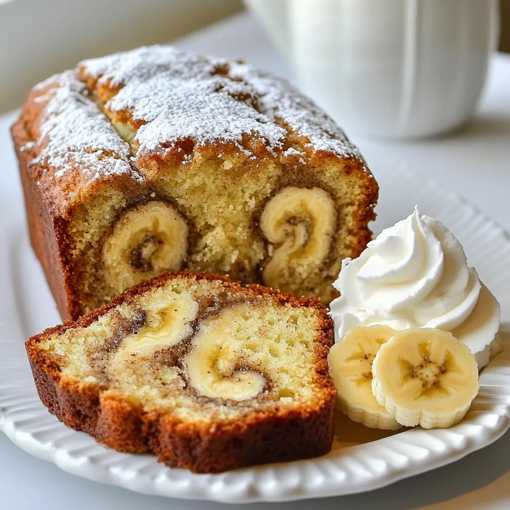 A deliciously moist banana bread with a delightful cinnamon swirl.