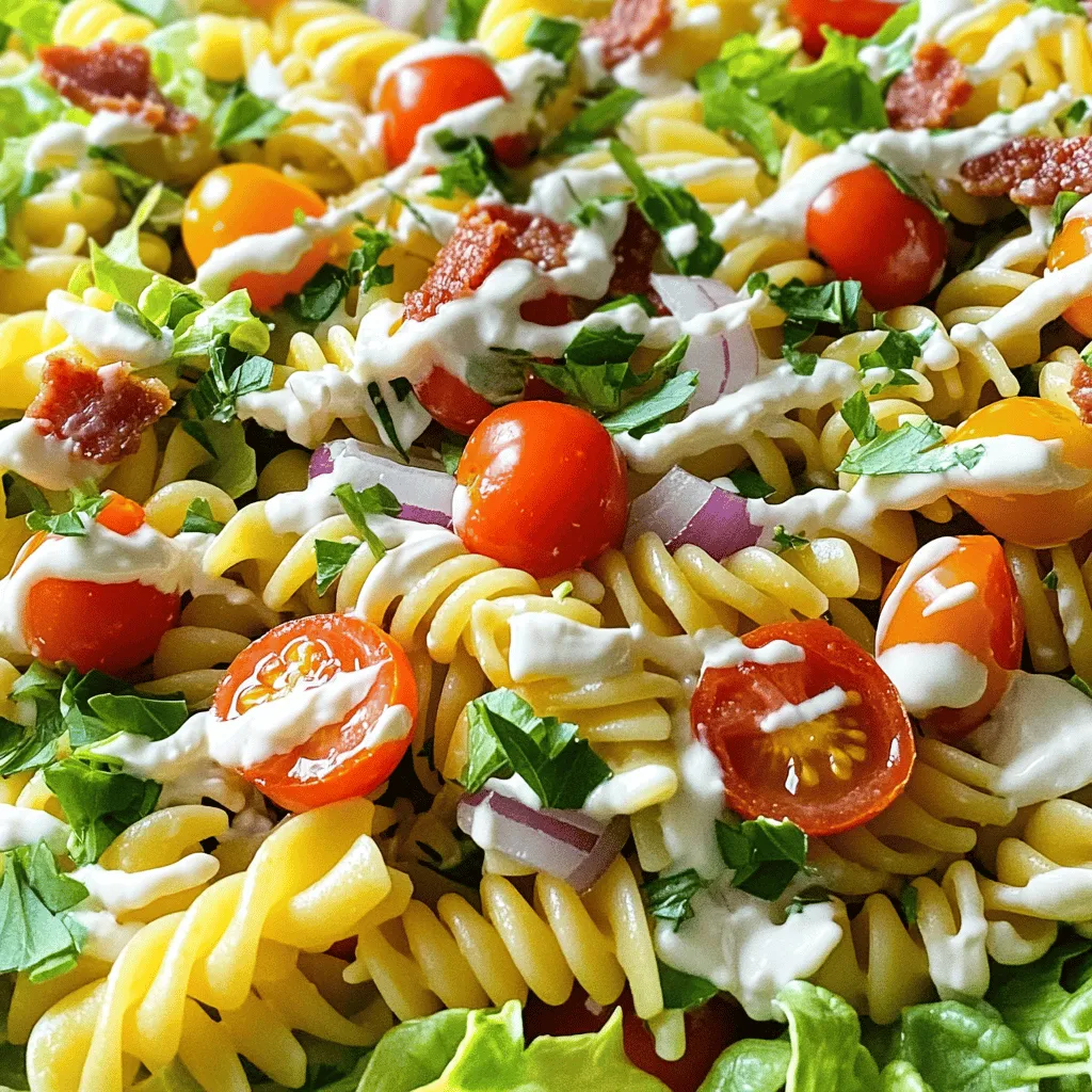 To make the Classic BLT Pasta Salad, you need a few tasty ingredients. Hereβs what to gather: