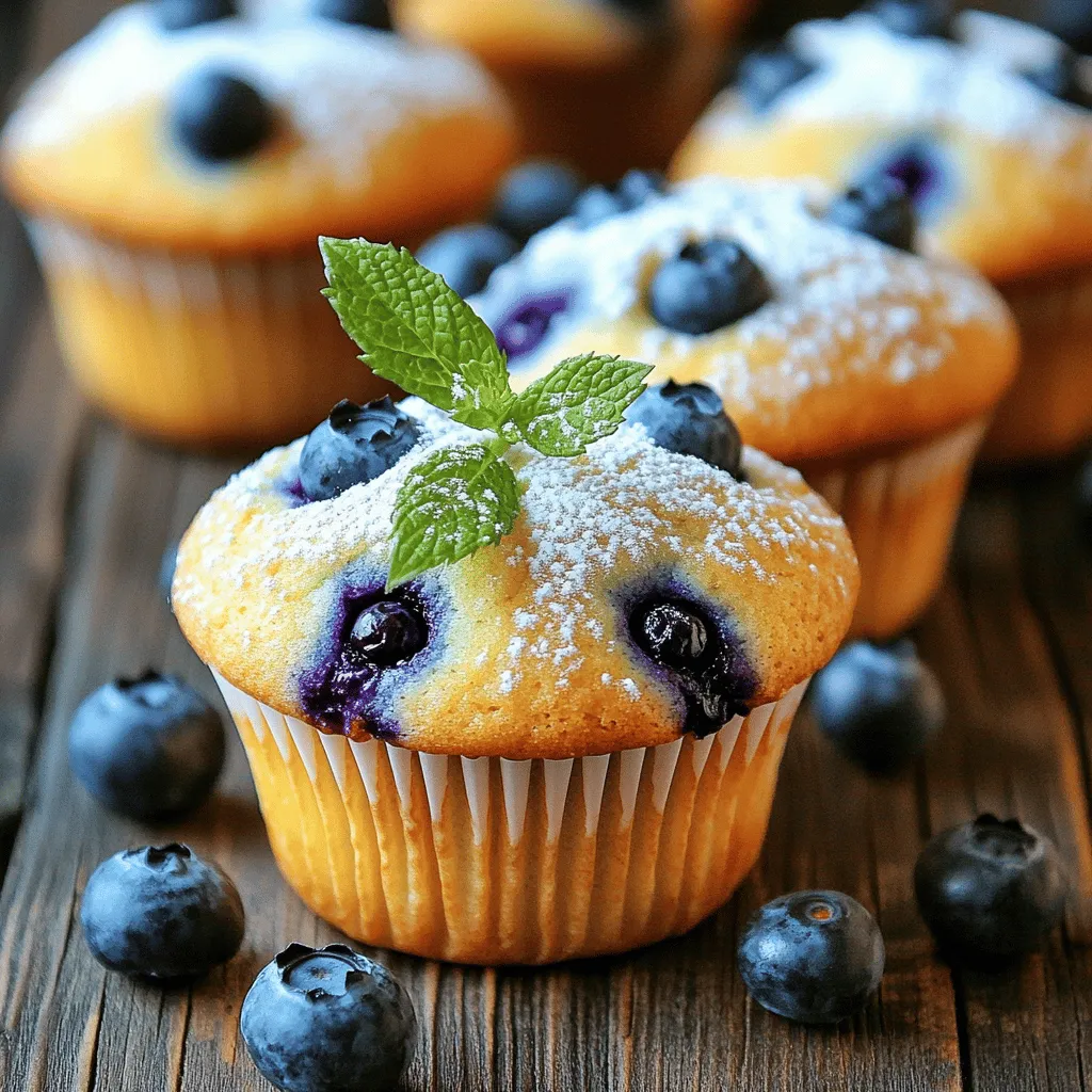 To make classic blueberry muffins, you will need: - 1 ½ cups all-purpose flour - ½ cup granulated sugar - ½ teaspoon baking powder - ½ teaspoon baking soda - ¼ teaspoon sea salt - 1 large egg - ½ cup unsalted butter, melted and cooled - 1 teaspoon pure vanilla extract - ½ cup buttermilk (or milk with 1 teaspoon vinegar) - 1 ½ cups fresh blueberries (or frozen, do not thaw) You can swap ingredients if needed. For the flour, use whole wheat flour for a healthier option. If you want less sugar, try using honey or maple syrup. For a dairy-free version, use almond milk instead of buttermilk. You can replace butter with coconut oil for a different taste. Just melt it like you would the butter. When picking blueberries, look for plump, firm berries. The color should be deep blue with a light white bloom on it. Avoid berries that are soft or have green spots. Fresh blueberries should smell sweet and fragrant. If you buy them from a store, check the bottom of the container for any signs of mold. Enjoy the fresh taste of blueberries for your muffins! First, preheat your oven to 375°F (190°C). This step is key for fluffy muffins. While the oven heats, prepare your muffin pan. You can line it with paper liners or spray it with a non-stick cooking spray. This helps the muffins come out easily after baking. In a medium bowl, mix your dry ingredients. Combine 1 ½ cups of all-purpose flour, ½ cup of granulated sugar, ½ teaspoon of baking powder, ½ teaspoon of baking soda, and ¼ teaspoon of sea salt. Use a whisk to blend them well. In another bowl, crack 1 large egg and stir it gently. Then, add ½ cup of melted and cooled unsalted butter, 1 teaspoon of pure vanilla extract, and ½ cup of buttermilk. Whisk until it is smooth and combined. Now, it’s time to combine the two mixtures. Slowly pour the wet mixture into the dry one. Use a spatula to fold them together gently. Mix until just combined. It’s okay if there are some lumps. Then, carefully fold in 1 ½ cups of fresh blueberries. Make sure to spread them evenly throughout the batter. Avoid breaking the berries to keep them whole. Next, divide the batter into your muffin cups. Fill each cup about ¾ full, giving the muffins room to rise. Place the muffin pan in the preheated oven and bake for 18-20 minutes. To check if they are done, insert a toothpick into the center of a muffin. It should come out clean or with a few moist crumbs. Once baked, let the muffins cool in the pan for about 5 minutes. After that, transfer them to a wire rack to cool completely. Enjoy your classic blueberry muffins! For the full recipe, refer to the earlier details. When making blueberry muffins, some errors can ruin your batch. Here are the top mistakes: - Overmixing the batter: This makes muffins dense. Mix just until combined. - Using cold ingredients: Cold butter or milk can lead to uneven baking. Use room-temperature items. - Not measuring flour correctly: Scoop and level flour for accuracy. Too much flour leads to dry muffins. - Skipping the cooling step: Let muffins cool in the pan for 5 minutes. This helps set their shape. Fluffy muffins are a delight. Here’s how to get that perfect texture: - Use fresh baking powder and soda: Old leavening agents won’t make muffins rise. - Fold in blueberries gently: This keeps the air in the batter. Breaks can lead to dense muffins. - Don’t pack flour: Lightly spoon flour into your measuring cup. This keeps the muffins light. Texture is key to a great muffin. Here are my tips for perfecting it: - Add buttermilk: It gives moisture and a tender crumb. If you don't have it, mix regular milk with vinegar. - Use melted butter: This adds rich flavor and keeps muffins moist. - Incorporate flavor: A touch of lemon zest brightens the taste and adds a nice zing. For the full recipe, you can refer back to the main section! {{image_4}} You can easily make these blueberry muffins healthier. Replace some all-purpose flour with whole wheat flour. This swap adds fiber and nutrients. You can also cut the sugar by using honey or maple syrup. These natural sweeteners add flavor without all the processed sugar. To boost the taste, consider adding lemon zest. A teaspoon of zest brightens the muffins and pairs well with blueberries. You can also mix in nuts, like walnuts or pecans. Nuts add crunch and protein, making your muffins even more satisfying. You can switch blueberries for other berries. Raspberries offer a tart flavor, while strawberries add sweetness. Just remember to adjust the amount to match the size of the berries. This lets you enjoy a new muffin each time you bake. For a mixed berry treat, try combining all three types. It’s colorful and delicious! For the full recipe, check out the Deliciously Classic Blueberry Muffins section. To keep your blueberry muffins fresh, store them in an airtight container. This helps them stay soft and moist. Place a paper towel at the bottom of the container to absorb any extra moisture. You can also add a layer of paper towel on top of the muffins before sealing the lid. This keeps them from getting soggy. Store them at room temperature for up to 2 days. For longer storage, refrigeration can dry them out, so it’s best to avoid that. Freezing muffins is easy and keeps them fresh for a longer time. Start by cooling the muffins completely. Next, wrap each muffin tightly in plastic wrap. Then, place them in a freezer bag or an airtight container. Make sure to remove as much air as possible to prevent freezer burn. You can freeze them for up to 3 months. When you’re ready to eat them, just take out the muffins and let them thaw at room temperature. To enjoy your muffins warm, you can reheat them in the oven or microwave. For the oven, preheat it to 350°F (175°C). Place the muffins on a baking sheet and heat for about 5-10 minutes. This will keep them soft and fluffy. If you use a microwave, heat each muffin for about 15-20 seconds. Be careful not to overheat, as this can make 