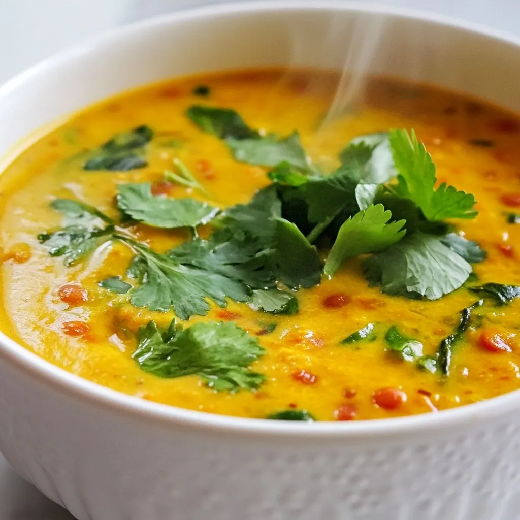 A flavorful and creamy soup made with red lentils, coconut milk, and aromatic spices.