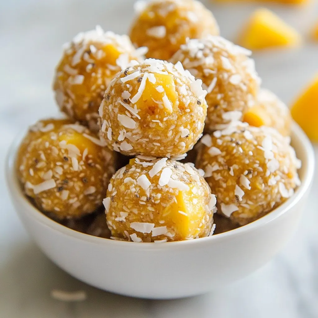 Delicious and nutritious energy bites made with coconut and mango, perfect for a quick snack.