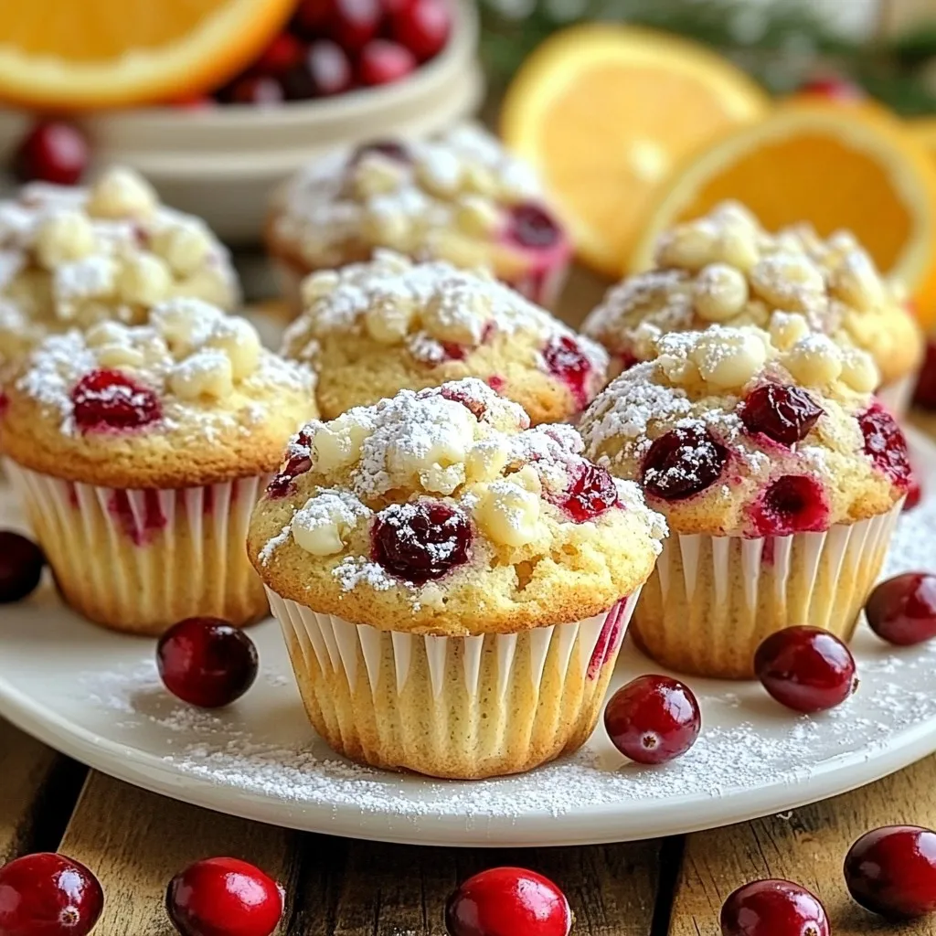 Delicious muffins featuring cranberries and white chocolate, perfect for a festive treat.