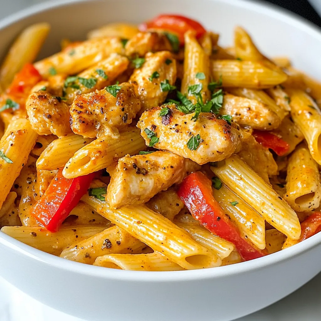 A delicious and creamy pasta dish with Cajun-seasoned chicken and vegetables.