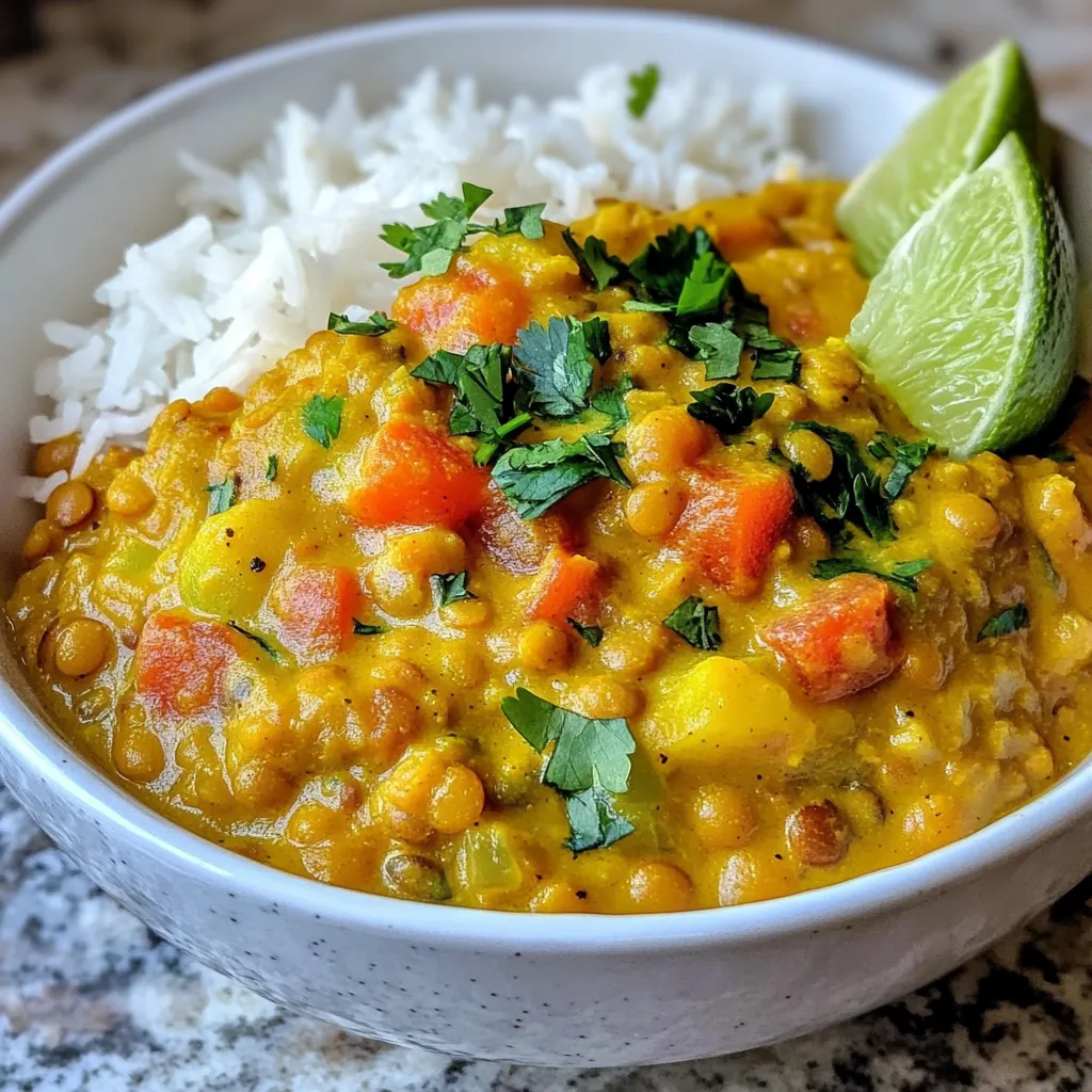 A rich and flavorful curry made with red lentils, coconut milk, and a variety of vegetables, perfect for a comforting meal.