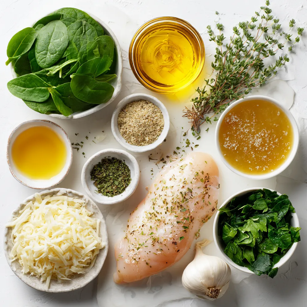 For the sauce, you’ll need olive oil, minced garlic, heavy cream, and chicken broth. The garlic gives a bold taste, while the cream and broth create a rich texture. Add freshly grated Parmesan cheese, which melts into the sauce, making it creamy. Finally, stir in chopped spinach for color and freshness.