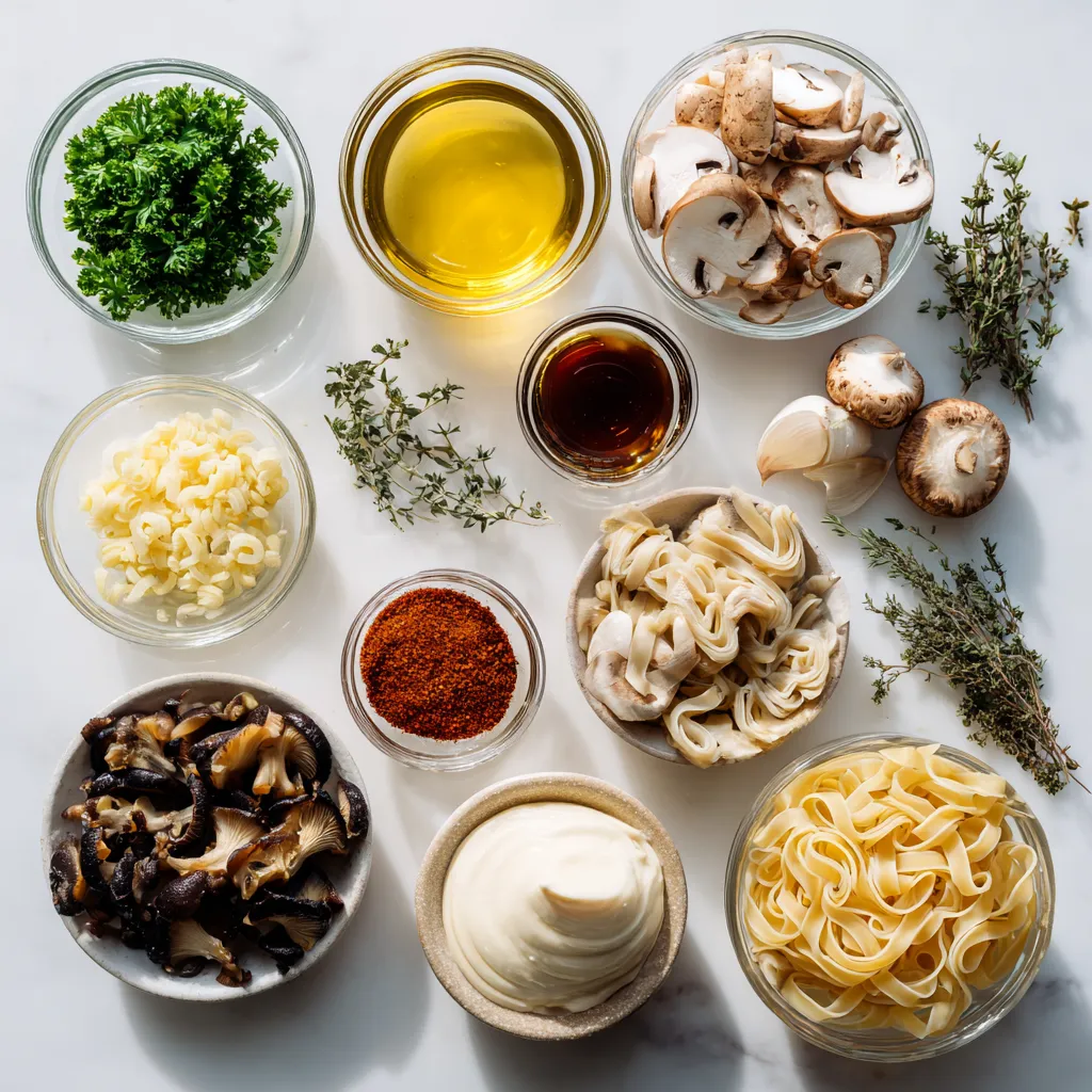 Flour helps thicken the sauce, making it creamy. Vegetable broth adds moisture and flavor. Sour cream gives a lovely tang, and soy sauce deepens the umami taste. Egg noodles or gluten-free pasta serve as the perfect vessel for this dish. Fresh parsley adds a pop of color and freshness when you serve it.