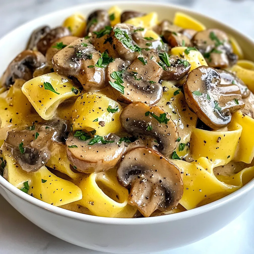 A creamy and flavorful mushroom stroganoff that is perfect for a comforting meal.