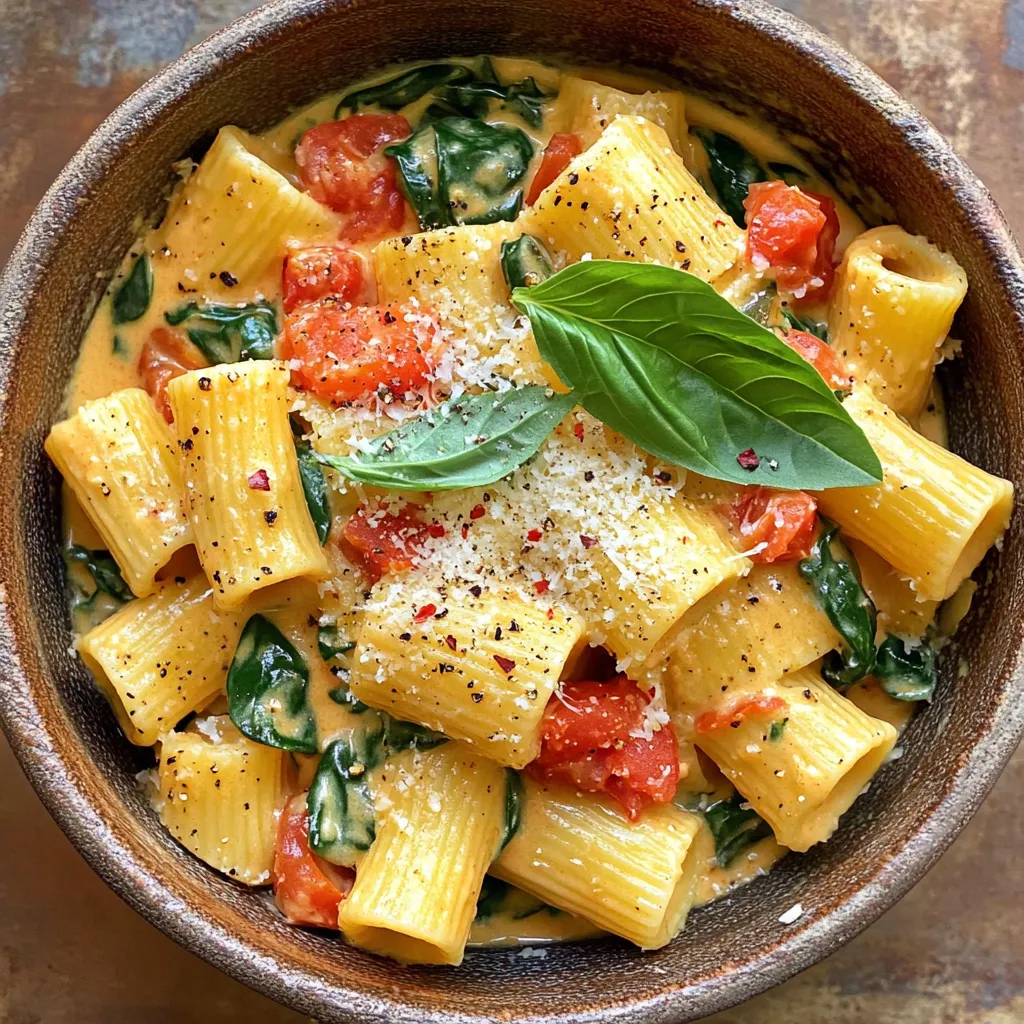You can easily make this dish vegetarian or vegan. For a vegetarian option, just stick to the recipe. Use heavy cream and Parmesan cheese as listed. If you want a vegan version, swap the heavy cream for coconut cream. It gives the same creamy texture but without dairy. Instead of Parmesan, use nutritional yeast for a cheesy flavor. This way, everyone can enjoy the creamy tomato spinach pasta.