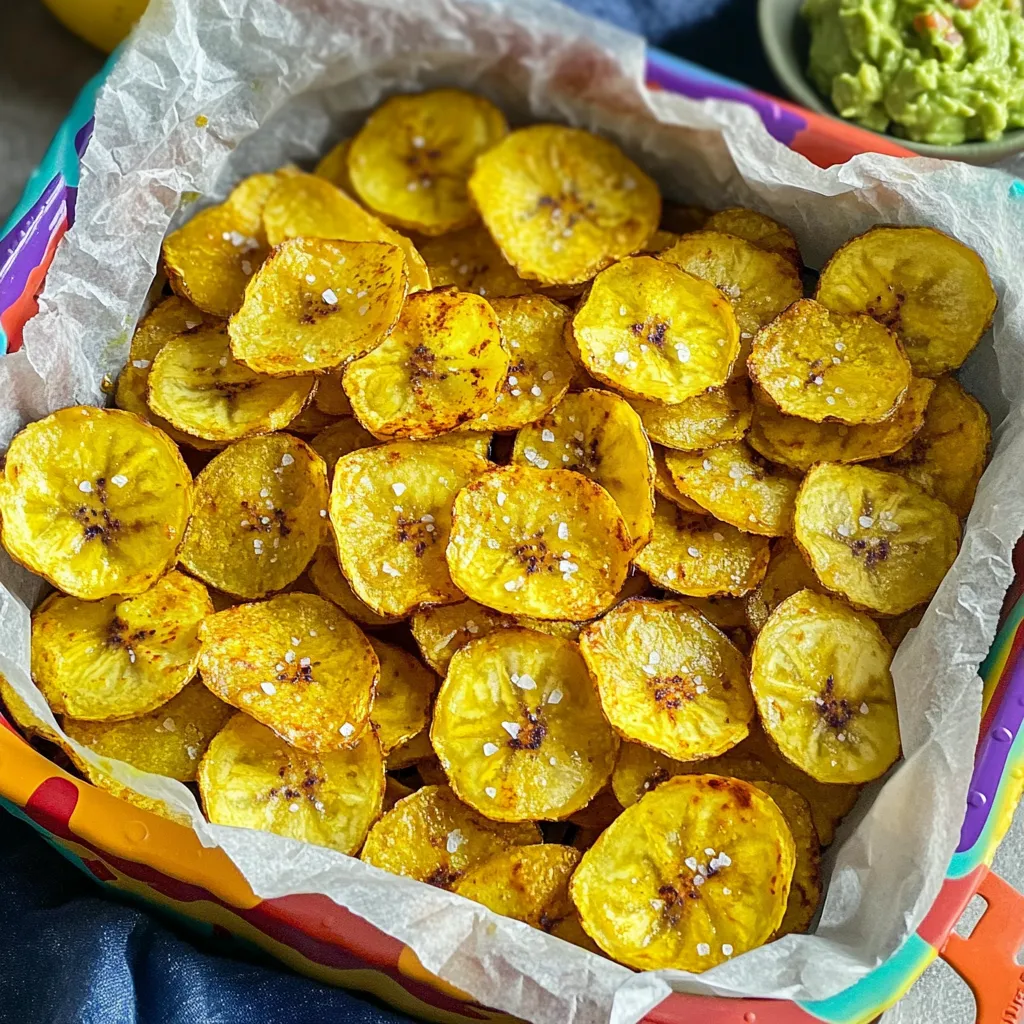 For serving, think about dips. Guacamole or fresh salsa pairs well with plantain chips. These dips add flavor and a fun touch. You can also present the chips in a basket lined with parchment paper. This makes them look appealing and ready to share.