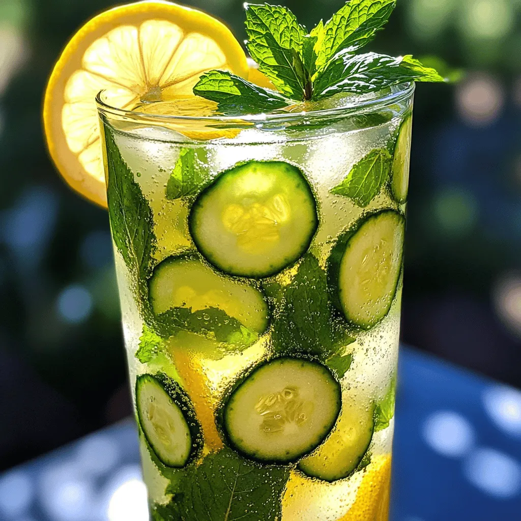 To prepare your Cucumber Mint Lemonade, gather these fresh ingredients. Cucumbers are hydrating and crisp. Mint adds a cool burst. Fresh lemon juice gives a tangy kick. Honey or agave syrup sweetens the drink. Cold water brings everything together, making it refreshing.