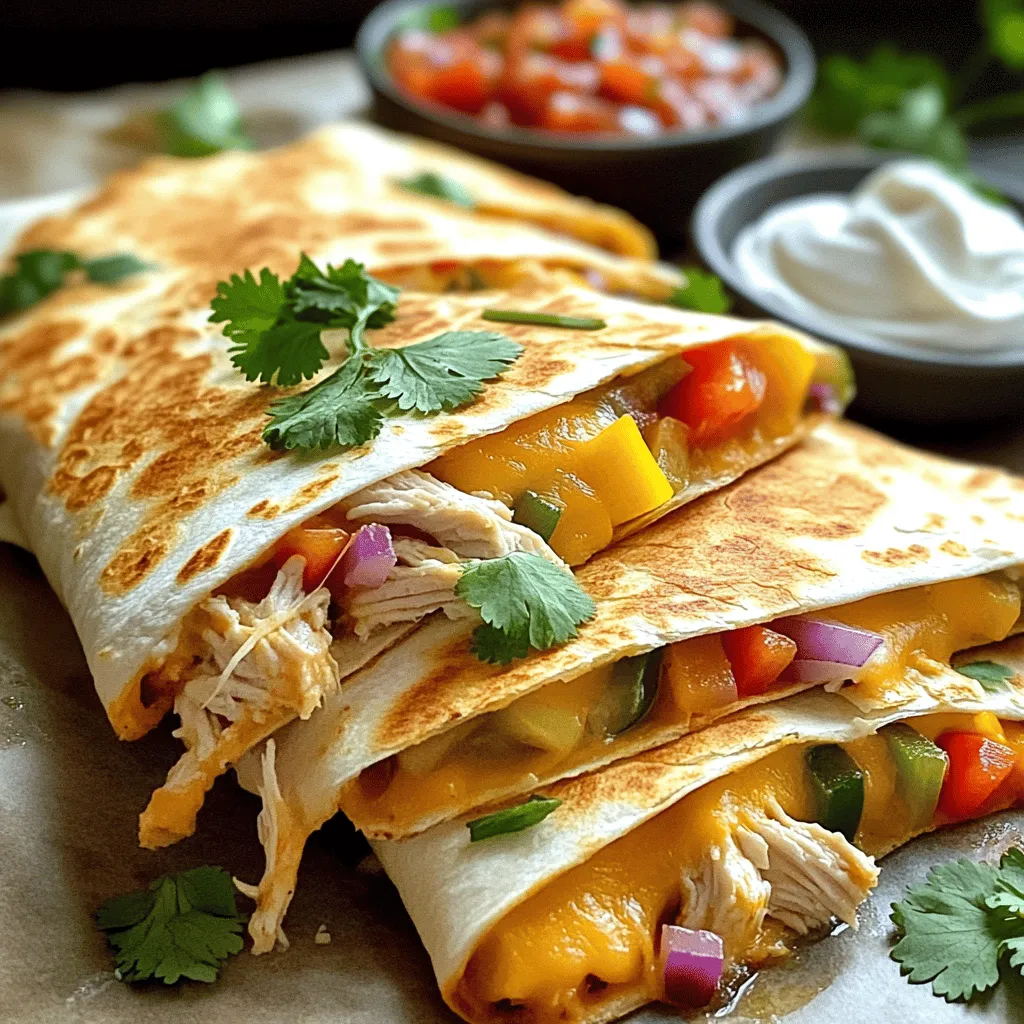 To make great chicken quesadillas, you need fresh ingredients. First, use two cups of cooked chicken. The chicken should be shredded for easy mixing. Next, add a cup each of cheddar and Monterey Jack cheese. These cheeses melt well and give a rich taste.