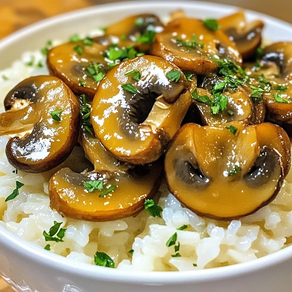 Garnish your rice with fresh parsley and extra mushrooms. This adds a pop of color and flavor. You can serve it with grilled chicken for a complete meal. This dish pairs well with many main dishes. Enjoy the blend of garlic, butter, and mushrooms in every bite.