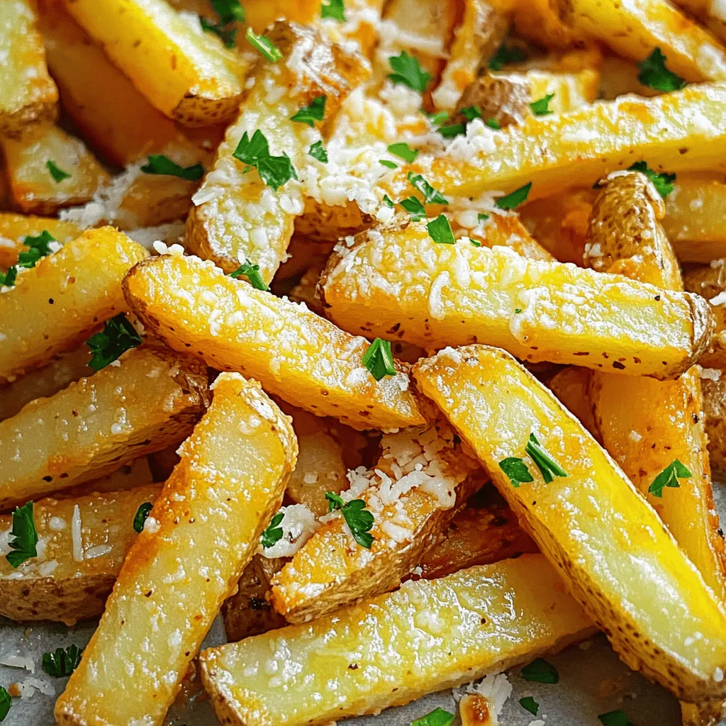 When making Garlic Parmesan Air Fryer Fries, I always start with fresh, high-quality ingredients. The russet potatoes give the best texture. Their starchy nature makes them perfect for frying. I prefer to peel them, but you can leave the skin on if you like a rustic vibe.