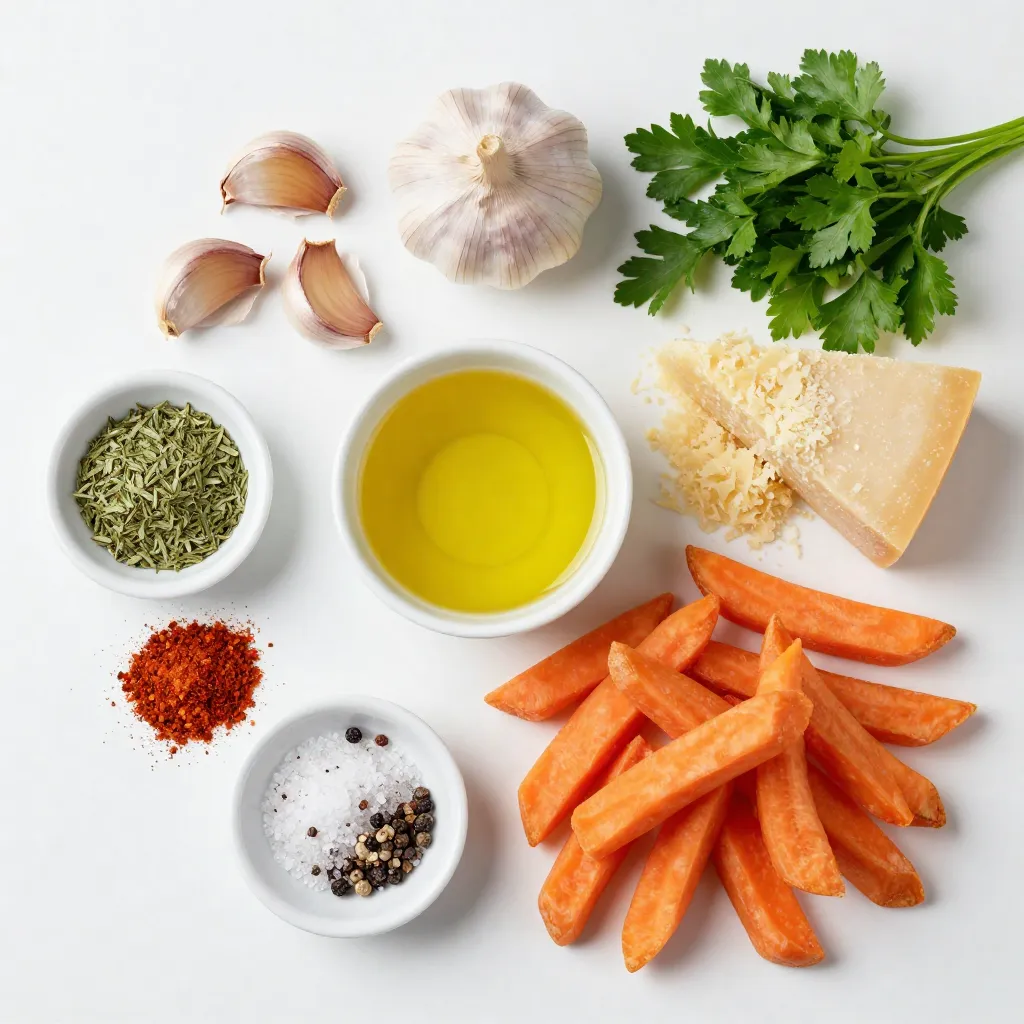 Gathering the right ingredients is key to making Garlic Parmesan Carrot Fries. Start with fresh, large carrots. They provide the best texture and flavor. Use extra virgin olive oil for a rich taste. Fresh garlic adds a strong aroma that makes the fries special. Grated Parmesan cheese gives that creamy, salty touch.