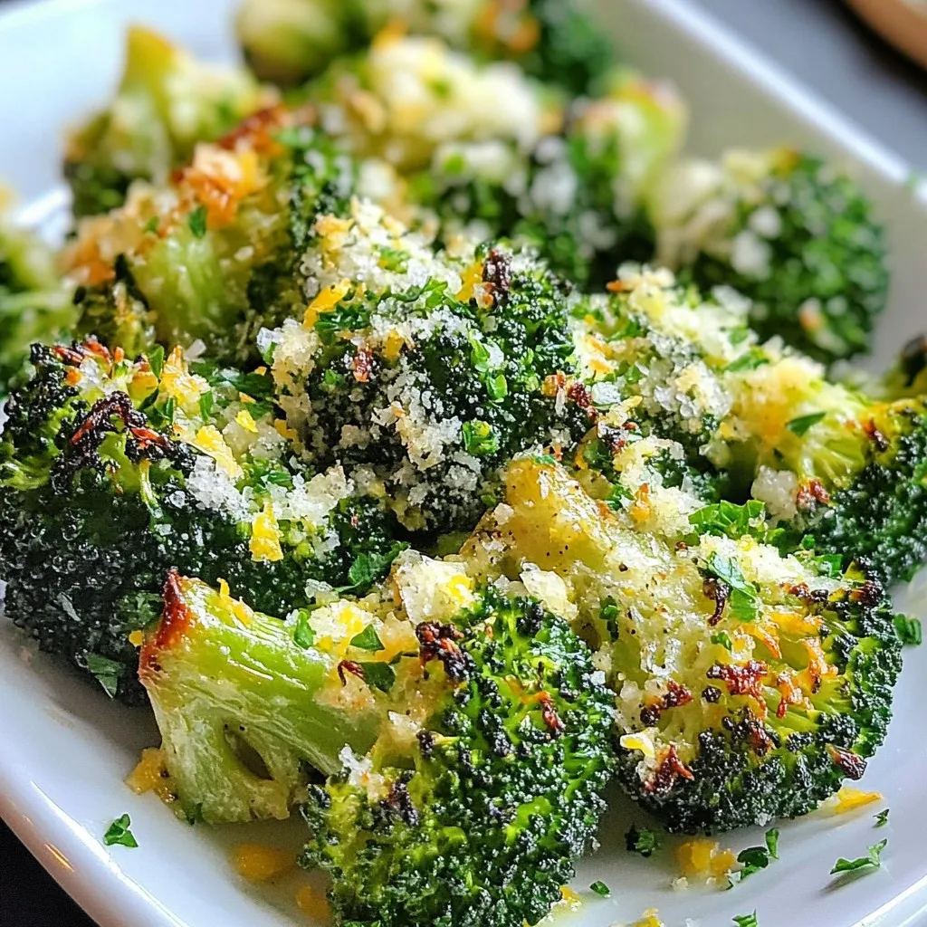 A delicious and healthy side dish featuring roasted broccoli tossed with garlic, Parmesan cheese, and a hint of lemon.