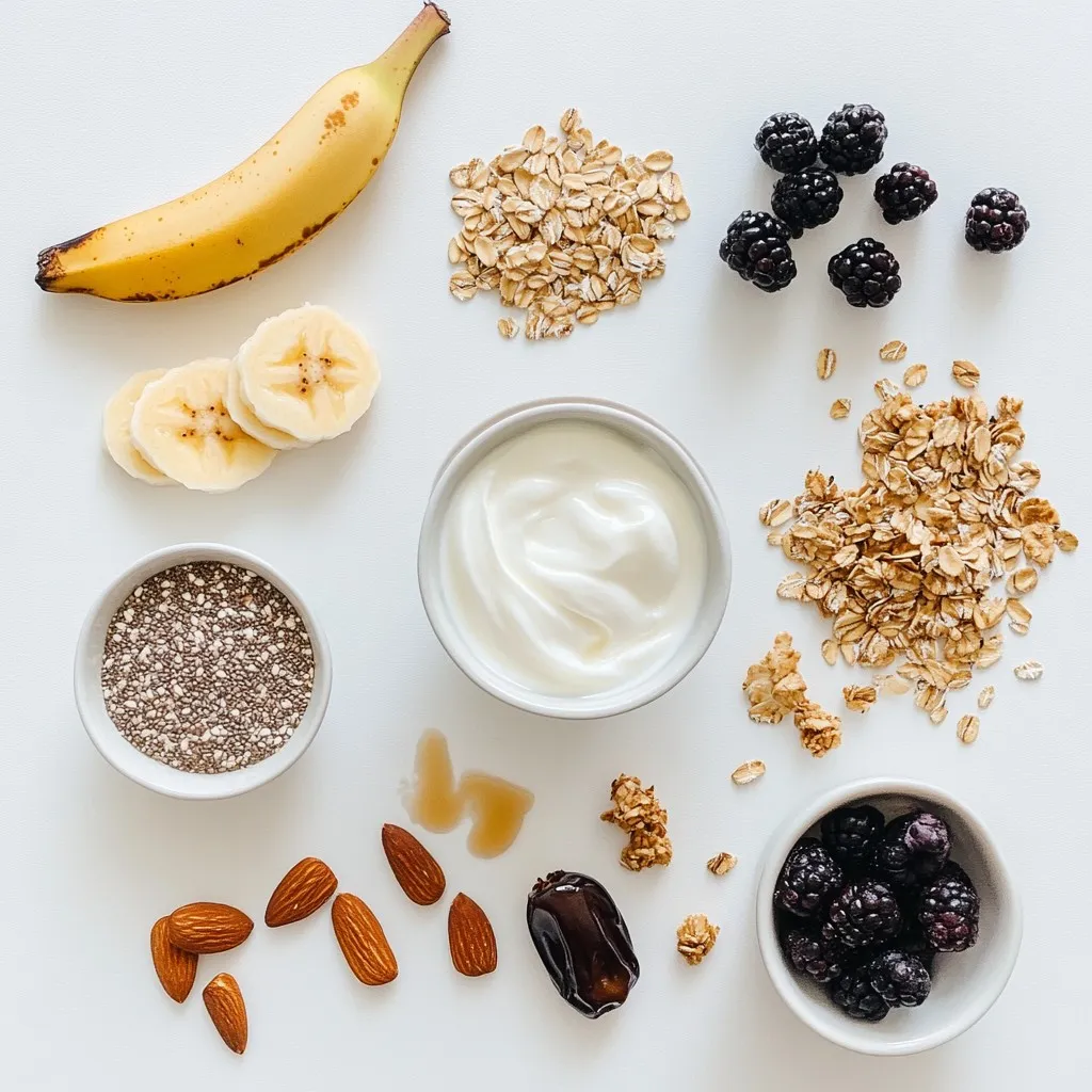 The main ingredients bring the rich flavors of gingerbread to life. Almond milk adds a creamy base. A frozen banana gives natural sweetness and a smooth texture. Rolled oats provide fiber and heartiness. Greek yogurt boosts creaminess and protein. Molasses gives that deep, rich flavor we all love in gingerbread.