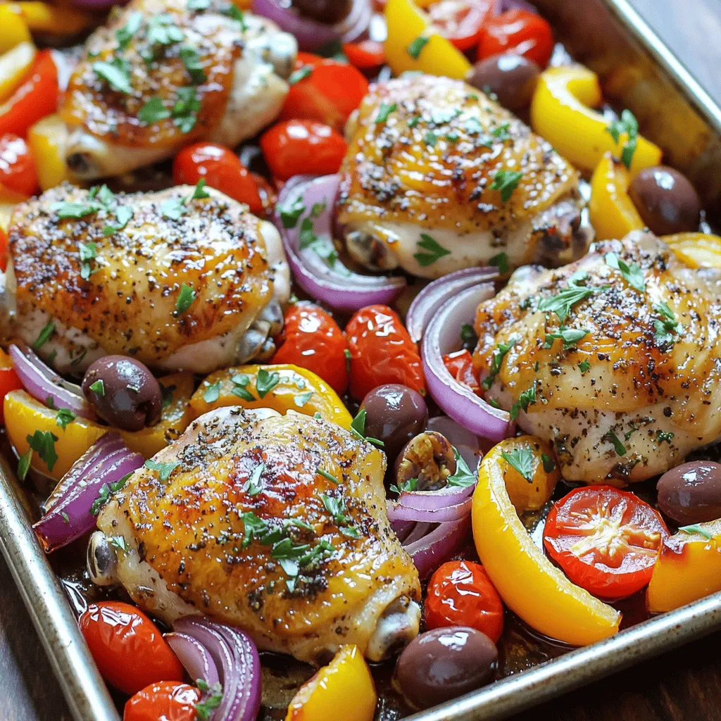 – Serve with Style: For a fun presentation, serve the chicken and veggies right from the pan. This makes it easy for everyone to help themselves and enjoy the vibrant Mediterranean dish.