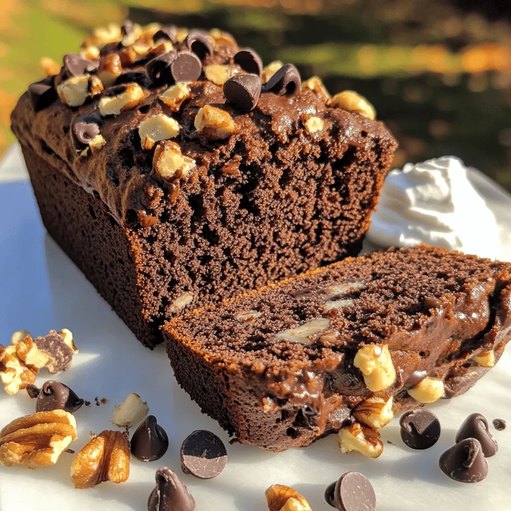 To make healthy chocolate banana bread, you need simple and wholesome ingredients. Here’s what you will need: - 3 ripe bananas, thoroughly mashed - 1/4 cup unsweetened applesauce - 1/4 cup honey or maple syrup (your choice for sweetness) - 1/2 cup Greek yogurt (plain) - 2 large eggs, at room temperature - 1 teaspoon pure vanilla extract - 1 1/2 cups whole wheat flour - 1/3 cup unsweetened cocoa powder - 1 teaspoon baking soda - 1/2 teaspoon baking powder - 1/4 teaspoon fine sea salt - 1/2 cup dark chocolate chips (optional, but highly recommended) - 1/4 cup chopped nuts (such as walnuts or almonds, optional) Using ripe bananas is key. They add natural sweetness and moisture. Applesauce also helps keep the bread moist while cutting down on added fats. Greek yogurt boosts protein and gives a nice texture. Whole wheat flour adds fiber, making this bread a healthier choice. You can customize your bread with dark chocolate chips or nuts. Both add extra flavor and texture. For the full recipe, check out the [Full Recipe]. First, preheat your oven to 350°F (175°C). This temperature helps the bread bake evenly. While the oven heats, prepare your loaf pan. You can grease a 9x5 inch loaf pan with cooking spray. Alternatively, line it with parchment paper. This will make it easier to remove the bread later. In a large mixing bowl, mash your ripe bananas until smooth. You need about three ripe bananas. Then, add 1/4 cup of unsweetened applesauce. Next, add 1/4 cup of honey or maple syrup for sweetness. Include 1/2 cup of plain Greek yogurt and two large eggs, which should be at room temperature. Add 1 teaspoon of pure vanilla extract as well. Mix all these ingredients thoroughly until the mixture is smooth. In a separate bowl, whisk together the dry ingredients. You will need 1 1/2 cups of whole wheat flour and 1/3 cup of unsweetened cocoa powder. Also, add 1 teaspoon of baking soda, 1/2 teaspoon of baking powder, and 1/4 teaspoon of fine sea salt. Make sure all dry ingredients are mixed well. Now, carefully add the dry ingredients to the wet banana mixture. Use a spatula or wooden spoon to stir gently. Mix until just combined. Avoid overmixing, as this can make the bread tough. The batter should be slightly lumpy. If you want to add extra flavor, fold in dark chocolate chips and chopped nuts. Use 1/2 cup of dark chocolate chips and 1/4 cup of chopped nuts, like walnuts or almonds. Ensure they are evenly distributed throughout the batter for a tasty bite every time. Transfer the batter to your prepared loaf pan. Use a spatula to smooth the top for an even bake. Place the loaf pan in the preheated oven. Bake for 50-60 minutes. To check for doneness, insert a toothpick into the center. It should come out clean or with a few moist crumbs. Once baked, let the bread cool in the pan for about 10 minutes. Then, transfer the banana bread to a wire rack to cool completely. You can find the Full Recipe for more details. To make your healthy chocolate banana bread truly moist, use ripe bananas. Ripe bananas are sweet and soft. They add natural sweetness and moisture to your bread. The darker the skin, the better! Adding yogurt and applesauce also helps. Greek yogurt gives a creamy texture and extra protein. Applesauce adds moisture without added fat. Together, they keep your bread soft and tasty. Some common mistakes can ruin your bread. One big mistake is overmixing the batter. When you mix too much, the bread can become tough. Mix just until you see no dry flour. Another mistake is not measuring ingredients correctly. Use measuring cups and spoons for accuracy. A little too much flour or sugar can change the taste and texture. You can easily enhance the flavor of your banana bread. Adding spices like cinnamon or nutmeg can bring warmth. A splash of almond or coconut extract adds a delightful twist too. If you like your bread sweeter, adjust the sweetness level. You can add more honey or maple syrup. Just remember to keep it balanced so it doesn’t overpower the chocolate. For the full experience, check out the Full Recipe to enjoy this treat! {{image_4}} You can make this banana bread vegan. Start by replacing the eggs. Use 1/4 cup of ground flaxseed mixed with 1/2 cup of water. This mix acts like eggs, binding the ingredients. For yogurt, use a plant-based option like almond or coconut yogurt. Sweeteners also matter. Instead of honey, opt for maple syrup or agave nectar. These keep the bread sweet and delicious without any animal products. For those who need a gluten-free option, choose suitable flours. Almond flour or oat flour works well. You can also use a gluten-free all-purpose blend. If you switch flours, adjust the recipe slightly. Add a bit more liquid or an extra banana to keep the bread moist and fluffy. This helps achieve the right texture, so your bread is still tasty. Want to spice things up? Add some cinnamon or nutmeg to the batter. These spices bring warmth and depth to the flavor. You can also mix in different types of chocolate. Use milk chocolate or white chocolate chips for a sweet twist. Each variation adds a unique touch. With these options, you can enjoy a new taste every time you bake. To keep your healthy chocolate banana bread fresh, store it properly. Allow the bread to cool completely after baking. Then wrap it in plastic wrap or aluminum foil. This helps keep moisture in and prevents it from drying out. You can also place it in an airtight container. A container with a tight lid works best. If you want to save some banana bread for later, freezing is a smart option. Slice the bread into pieces before freezing. This makes it easy to grab a slice when you want one. Wrap each slice in plastic wrap. Then, place the wrapped slices in a freezer bag. Make sure to remove as much air as possible before sealing. When you are ready to enjoy your banana bread, you can thaw it easily. Place the slice in the fridge overnight. If you're in a rush, use a microwave. Heat it on low for about