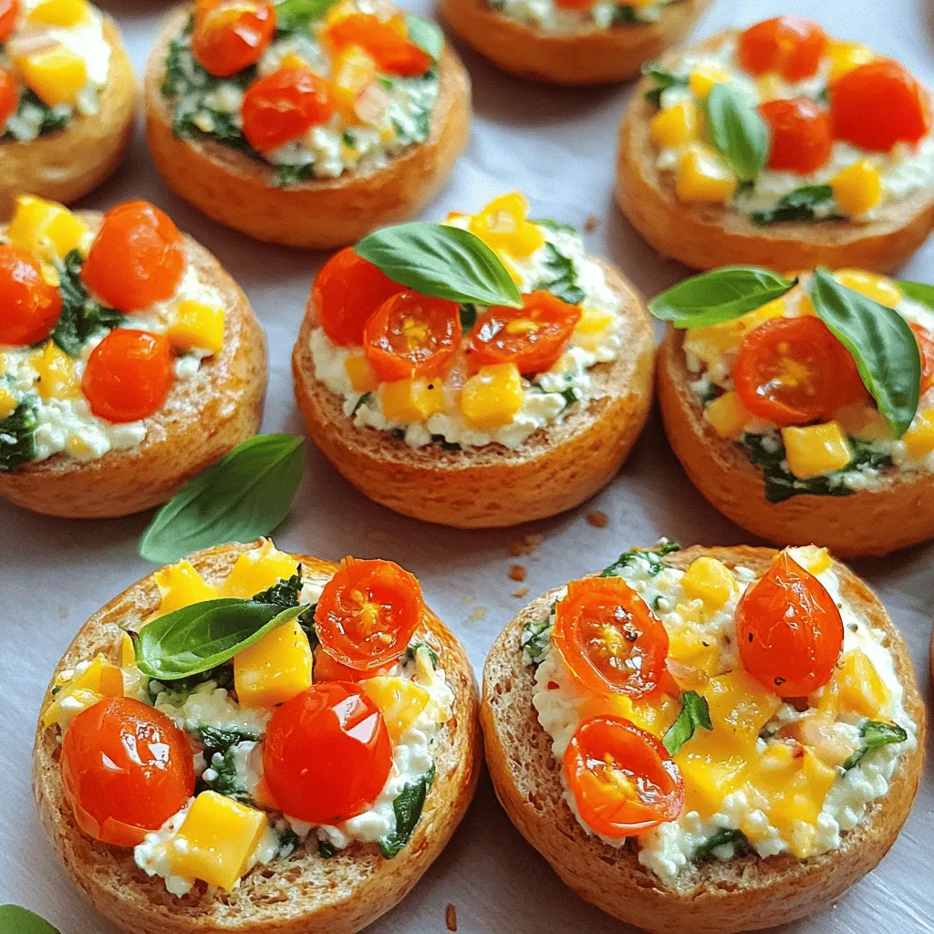 - 2 whole grain mini bagels, cut in half - 1 cup low-fat cottage cheese - 1/4 cup shredded cheddar cheese - 1/4 teaspoon garlic powder - 1/4 teaspoon onion powder - 1/2 teaspoon dried oregano - Salt and freshly ground black pepper, to taste - 2 tablespoons cherry tomatoes, diced - Fresh basil leaves for garnish These ingredients combine to create a tasty and healthy snack. Whole grain mini bagels give you fiber and texture. Low-fat cottage cheese adds protein and creaminess. Shredded cheddar cheese melts nicely, giving a rich flavor. The seasonings enhance the taste. Garlic powder adds a savory note. Onion powder gives warmth, while oregano brings a hint of earthiness. Salt and pepper balance all the flavors. For an extra pop, you can add diced cherry tomatoes. They add color and freshness. Fresh basil leaves finish the dish with a bright aroma. Gather these ingredients, and you are ready to make a delightful snack that is both high in protein and full of flavor. Enjoy the process of creating these bagel bites! - Preheat the oven to 375°F (190°C). - Prepare the baking sheet with parchment paper. - In a medium bowl, combine 1 cup cottage cheese, 1/4 cup shredded cheddar, and 1/4 cup cooked spinach. - Add 1/4 teaspoon garlic powder, 1/4 teaspoon onion powder, salt, black pepper, and 1/2 teaspoon dried oregano. - Stir the mixture until it’s creamy and smooth. - Take your whole grain mini bagels and cut them in half. - Place the bagel halves cut-side up on the prepared baking sheet. - Spoon the cottage cheese filling generously onto each bagel half. - Scatter diced cherry tomatoes over the filling for extra flavor. - Bake the bagel bites for 12-15 minutes. - Watch for golden edges and melted cheese. - Once done, remove them from the oven and let them cool for about a minute. - Garnish with fresh basil leaves for a nice touch before serving. You can swap out cheese based on your taste. Here are some options: - Ricotta cheese: Creamy and mild, great for a soft texture. - Feta cheese: Add a tangy flavor that pairs well with spinach. For vegetables, consider these substitutes: - Kale: A firm option that adds more nutrients. - Roasted red peppers: Sweet and colorful, they enhance the flavor. To get your bagel bites crispy, adjust your baking time: - Crispier edges: Bake for the full 15 minutes. - Chewy texture: Bake closer to 12 minutes. Even distribution of filling is key. Here’s how: - Use a spoon: Spread the filling evenly on each bagel half. - Layer it well: Don’t rush; a thick layer adds more flavor. Pair these bagel bites for a balanced snack: - Fresh fruit: Serve with apple slices or berries for sweetness. - Yogurt: A side of yogurt adds creaminess and protein. Perfect accompaniments include: - Herbal tea: A light herbal tea enhances the flavors. - Crunchy salad: A crisp salad adds freshness and crunch. {{image_4}} You can make these bagel bites even tastier. Here are some ideas: - Add spices or herbs: Try adding a pinch of smoked paprika or a dash of cayenne for heat. Fresh herbs like chives or dill can brighten the flavor. - Incorporate different cheeses: Swap the cheddar for mozzarella, feta, or goat cheese. Each cheese gives a unique taste. These bagel bites can fit different diets. Here’s how to adapt them: - Gluten-free variations: Use gluten-free mini bagels. Many brands offer great options that taste just as good. - Vegan alternatives: Replace cottage cheese with tofu or a nut-based cheese. Use nutritional yeast to mimic cheesy flavor. You can change the bagel bites with the seasons. Here are some fresh ideas: - Incorporating seasonal vegetables: In spring, add asparagus or peas. In fall, try roasted pumpkin or sweet potatoes. - Adapting flavors to the time of year: Use fresh basil in summer and rosemary in winter. These herbs pair well with seasonal veggies. Experimenting with these variations keeps your bagel bites exciting and fun! To keep your bagel bites fresh, store them in the fridge. Use an airtight container. They stay good for about 3 days. Make sure they cool before sealing. This helps keep moisture at bay. If you want to enjoy them later, just reheat. For longer storage, you can freeze the bagel bites. Place them in a single layer on a baking sheet. Freeze them for about an hour until solid. Then, transfer them to a freezer bag. They can last up to 2 months in the freezer. Just label the bag with the date. To reheat, use the oven for the best taste. Preheat your oven to 350°F (175°C). Place the bagel bites on a baking sheet. Heat for about 10-15 minutes until warm. This way, they stay crispy on the outside. You can also use a microwave, but they might get soft. If you want to keep them crunchy, stick to the oven. These bagel bites are both tasty and healthy. Each serving has about 180 calories. You get around 12 grams of protein, which helps build muscles. The fat content is low, at just about 6 grams. The cottage cheese adds a lovely creaminess and boosts protein. Whole grain bagels offer fiber, helping with digestion. You can enjoy this snack without guilt! Yes, you can make these bagel bites ahead of time! Prepare the filling and spread it on the bagels. Then, store them in the fridge for up to one day. When you're ready to eat, just bake them. This saves time and ensures a quick snack. You can also freeze the assembled bites for later. Just remember to bake them straight from the freezer, adding a few extra minutes to the cooking time. You can have fun with this recipe! Here are some ideas to make it your own: - Cheese: Swap cheddar for mozzarella or feta for a different flavor. - Veggies: Try bell peppers, mushrooms, or zucchini for more color and taste. - Spices: Add chili flakes for heat or fresh herbs for a burst of freshness. - Meat: You could add cooked bacon bits or ham for extra protein. These simple swaps can change the flavor and keep things exciting! Watch for a few key signs! The bagel edges should turn a golden brown. The cheese needs to be 