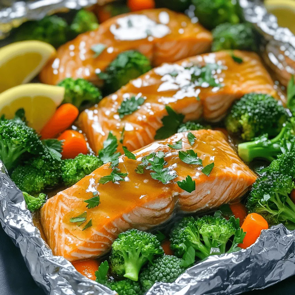 When I create Honey Garlic Salmon foil packets, I focus on fresh and vibrant ingredients. The salmon fillets are the star, bringing rich flavor and healthy fats. Honey adds sweetness, while garlic gives a bold kick.