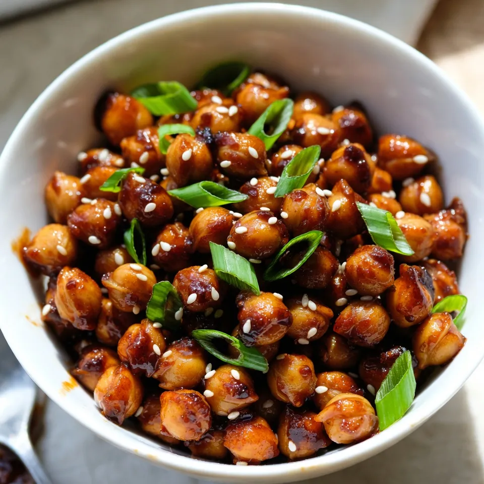 A flavorful dish featuring chickpeas marinated in a sweet and savory honey garlic sauce, sautΓ©ed to perfection.