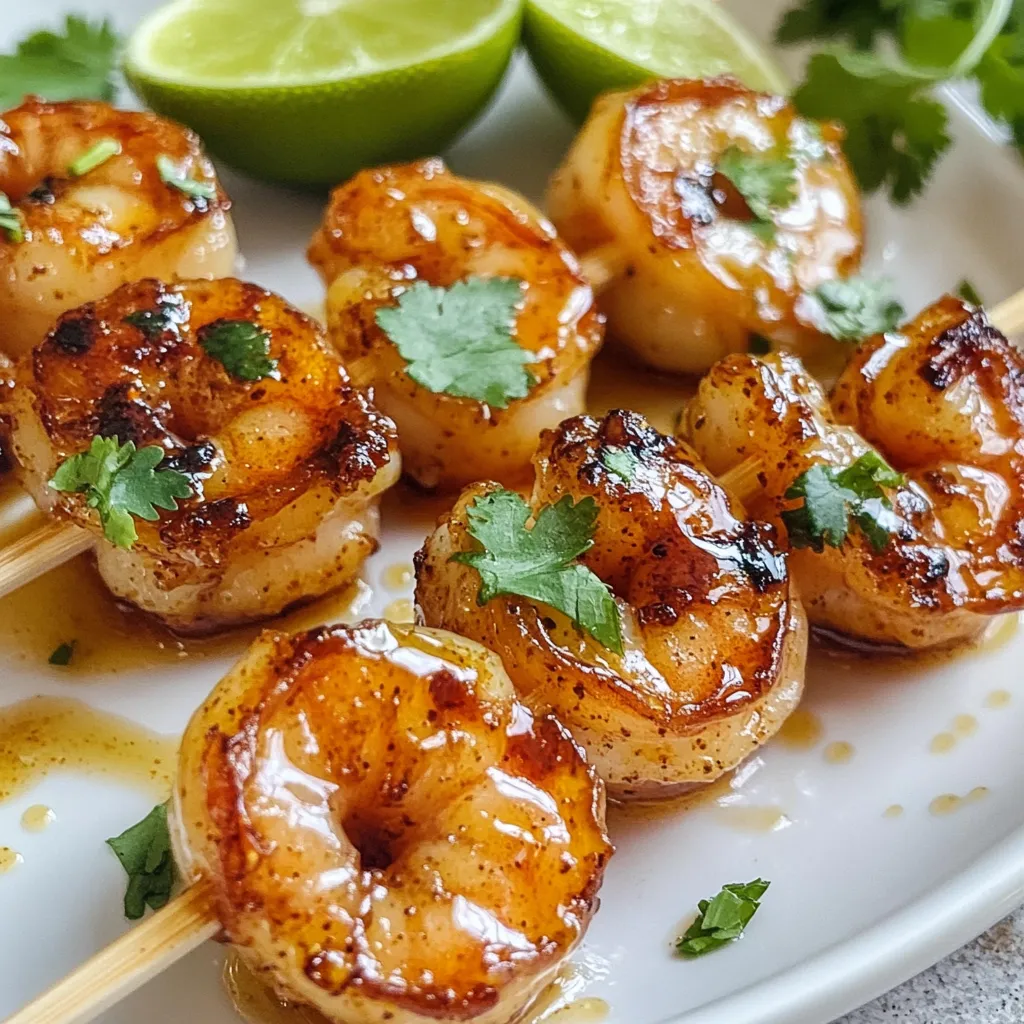 Cooking delicious Honey Lime Shrimp Skewers starts with gathering fresh ingredients. Here’s what you need: - 1 lb large shrimp, peeled and deveined - 3 tablespoons honey - 2 tablespoons freshly squeezed lime juice - 1 teaspoon lime zest - 2 cloves garlic, finely minced - 1 teaspoon ground cumin - 1 teaspoon smoked paprika - Salt and black pepper to taste - 2 tablespoons extra virgin olive oil - Fresh cilantro for garnish Each ingredient plays a vital role. The large shrimp provide a firm bite, making them perfect for skewers. Honey adds sweetness, while lime juice gives a tangy kick. Lime zest enhances the citrus flavor. Garlic brings depth, and spices like cumin and smoked paprika add warmth and smokiness. Using fresh ingredients is key. Fresh shrimp gives the best taste and texture. Opt for raw shrimp, as cooked shrimp will not work in this recipe. Feel free to experiment with the spices to suit your taste. A dash of chili powder can add heat if you like. For a twist, consider adding fresh herbs like thyme or basil. Gather these ingredients, and you will set the stage for a fantastic grilling experience that will impress everyone! {{ingredient_image_2}} First, grab a medium bowl and whisk together these ingredients: - 3 tablespoons honey - 2 tablespoons freshly squeezed lime juice - 1 teaspoon lime zest - 2 cloves garlic, finely minced - 1 teaspoon ground cumin - 1 teaspoon smoked paprika - 2 tablespoons extra virgin olive oil - A pinch of salt and pepper Mix them well until combined. The honey gives a sweet touch, while the lime juice adds tang. The garlic and spices bring depth to the flavor. Next, add the peeled and deveined shrimp to the bowl. Make sure every shrimp gets coated in this tasty marinade. This is crucial for great flavor. Cover the bowl with plastic wrap. Let the shrimp marinate for at least 30 minutes. If you have time, let them sit for up to 2 hours in the fridge. This longer time helps the shrimp soak up all the flavors. To maximize the flavor, remember to mix the shrimp in the marinade halfway through. This way, every bite is packed with taste. Now, it’s time to grill! Preheat your grill or grill pan to medium-high heat. This step is key to getting a nice char on the shrimp. Carefully thread the marinated shrimp onto skewers. Aim for 4-5 shrimp per skewer. Adjust based on their size. Once the grill is hot, lightly oil the grates. You can use a brush or a paper towel dipped in olive oil. This helps prevent sticking. Place the skewers on the grill and cook for 2-3 minutes on each side. Look for the shrimp to turn opaque and curl slightly. This shows they are fully cooked. After grilling, remove the skewers from the heat. Let them rest for a minute. Garnish with finely chopped cilantro for a fresh pop of color. Enjoy your honey lime shrimp skewers! To pick good shrimp, look for a few key signs. Fresh shrimp should smell like the sea. They should not have a strong fishy odor. The shrimp should be firm and not mushy. Look for a shiny appearance. Any black spots or discoloration might mean they are not fresh. Fresh shrimp is usually better than frozen. Fresh shrimp has a sweeter taste. Frozen shrimp can be good if it was frozen right after catching. Always check if it has been thawed before buying. If you buy frozen, look for packages that are solid and not frostbitten. For the best flavor, marinate the shrimp for at least 30 minutes. If you want even more flavor, try marinating for up to 2 hours. Just remember not to go too long, as shrimp can become mushy. You can change up the marinade too! Try adding some chili powder for heat. A splash of soy sauce can give it a savory touch. If you love herbs, add fresh cilantro or parsley for a fresh twist. To keep shrimp from sticking to the grill, oil the grates. Use a paper towel dipped in oil. This will help create a non-stick surface. Place the shrimp on the grill gently. You know the shrimp are perfectly cooked when they turn opaque. They will also curl slightly. Cook them for about 2-3 minutes on each side. Overcooking can make shrimp tough, so watch them closely. Pro Tips Marinate Longer for Depth: Allow the shrimp to marinate for up to 2 hours in the refrigerator for a more intense flavor profile. Use Soaked Wooden Skewers: If using wooden skewers, soak them in water for 30 minutes before threading the shrimp to prevent burning on the grill. Check for Doneness: Watch for the shrimp to turn opaque and curl slightly; this indicates they are cooked through and tender. Experiment with Spice: Add a pinch of cayenne pepper or chili flakes for a spicy kick to the marinade, enhancing the overall flavor. {{image_4}} You can change the marinade to keep things fresh. Try using soy sauce or teriyaki sauce for a new twist. You can also swap the shrimp for other seafood like scallops or salmon. Each option brings its own flavor and texture. Want some heat? Add cayenne pepper or chili flakes to your marinade. This adds a nice kick. For garnishing, consider using avocado slices or mango salsa. They give a cool and sweet balance to the savory shrimp. If you can’t grill, no problem! You can bake or broil the skewers in your oven. Use a broiler pan to catch drips and get a nice char. For skewering, try using bamboo or metal skewers. Mix different seafood and veggies for a colorful plate. To keep your honey lime shrimp skewers fresh, follow these tips: - Refrigeration: Place leftover shrimp in an airtight container. They will last for up to three days in the fridge. Make sure they cool down before sealing. - Freezing: For longer storage, you can freeze the skewers. Wrap each skewer tightly in plastic wrap. Then, place them in a freezer-safe bag. They can last for up to three months. When you want to eat them, let them thaw in the fridge overnight. Reheating shrimp can be tricky because you don’t want to lose flavor or make them tough. Here are some methods: - Skillet Method: Heat a non-stick skillet over low heat. Add a splash of wat